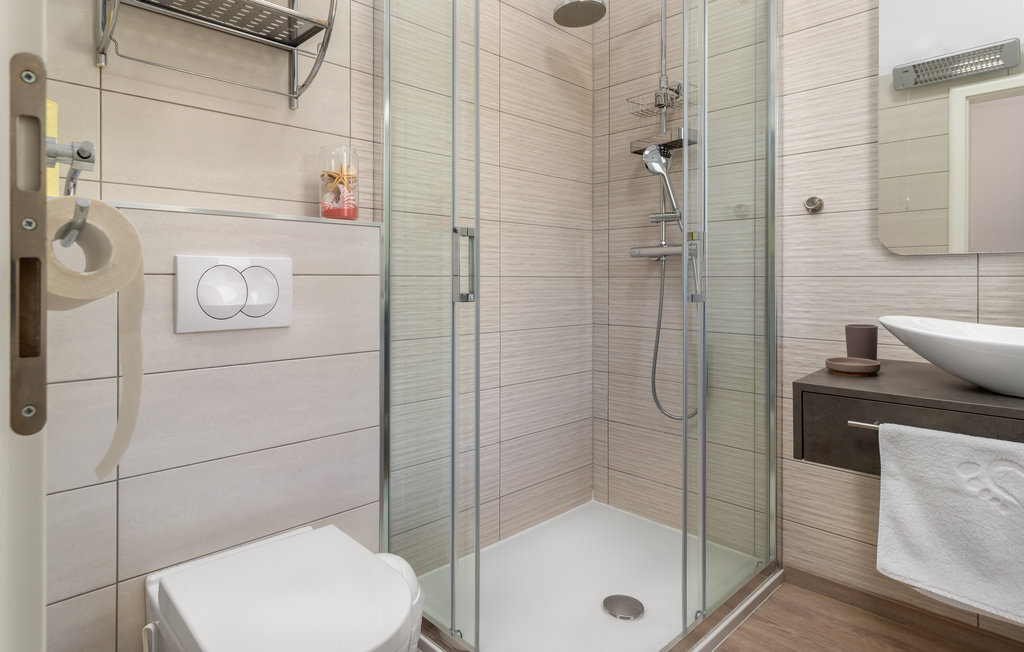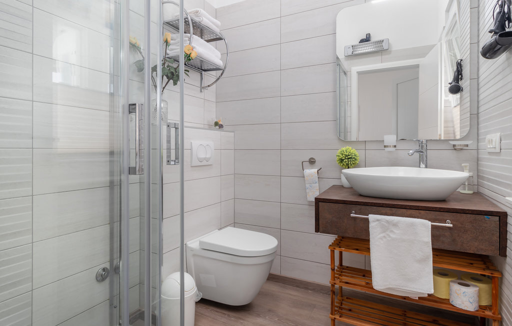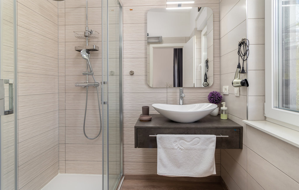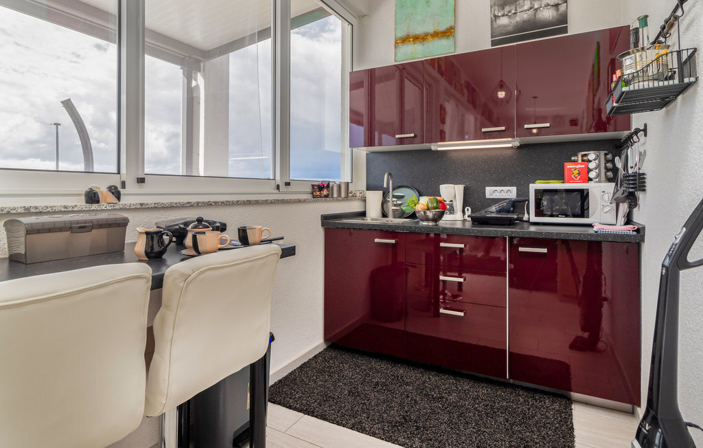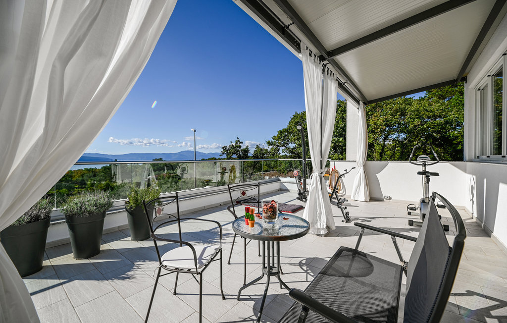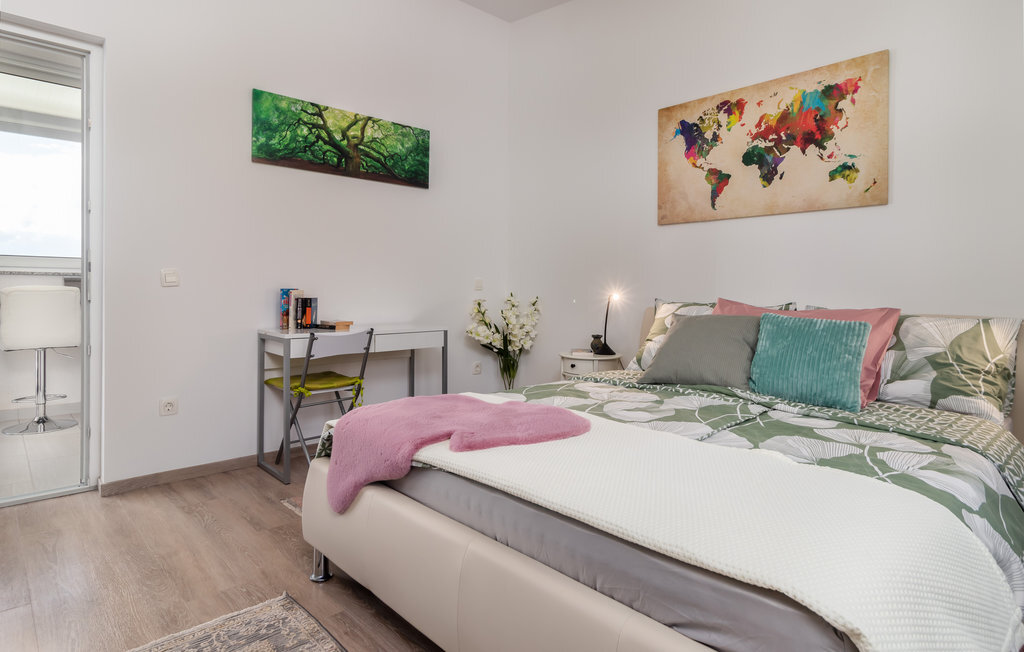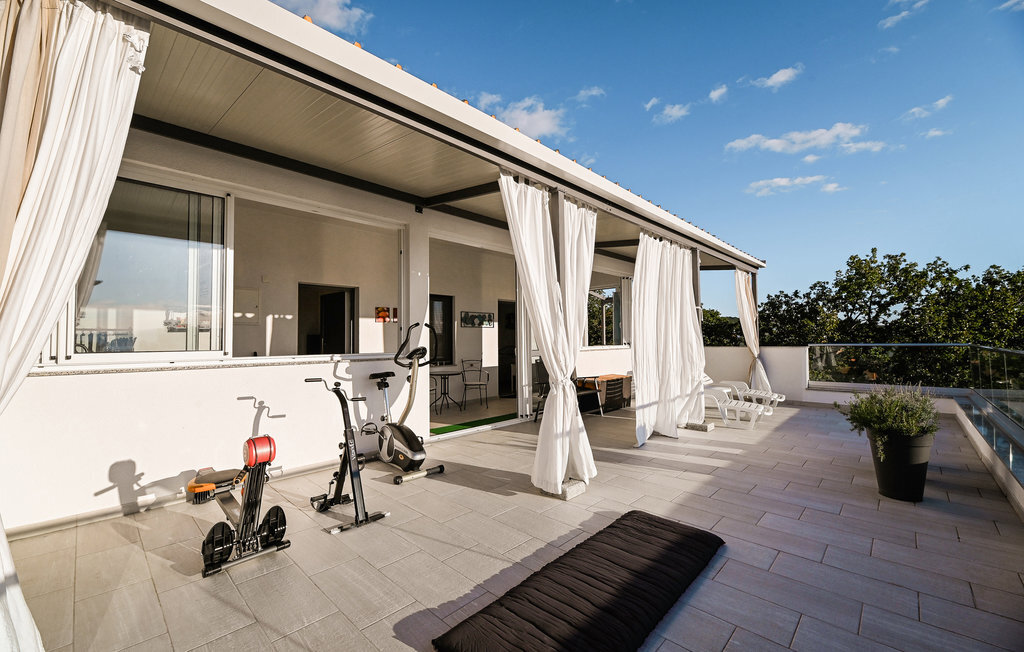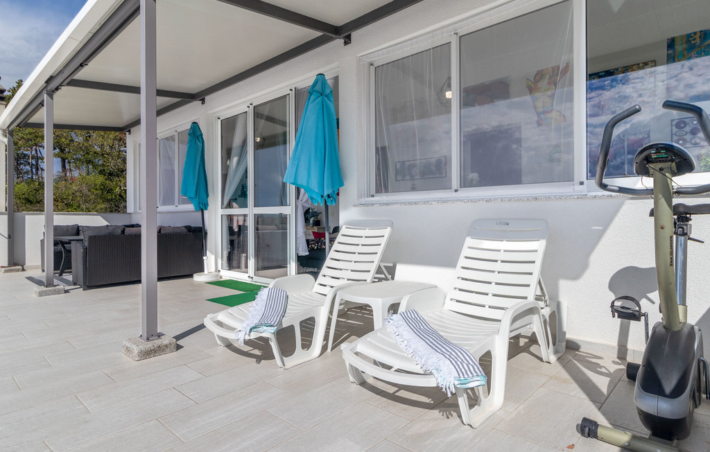 Réjouissez-vous avec votre famille ou un couple d'amis de passer des vacances exclusives dans ce magnifique et lumineux appartement. L'appartement moderne se trouve au premier étage et vous offre de nombreuses commodités magnifiques. Profitez des chambres confortables et de la grande terrasse qui deviendra votre salon. La terrasse partiellement couverte vous offre non seulement un superbe endroit pour vous détendre au soleil, mais aussi une vue magnifique sur la mer. Un étage plus bas, vous pourrez profiter du solarium et de la piscine commune chauffée avec système de nage à contre-courant et jacuzzi intégré pour vos séances de bien-être. Le jardin commun vous offre également de bonnes conditions pour passer de douces soirées d'été grâce à son barbecue.