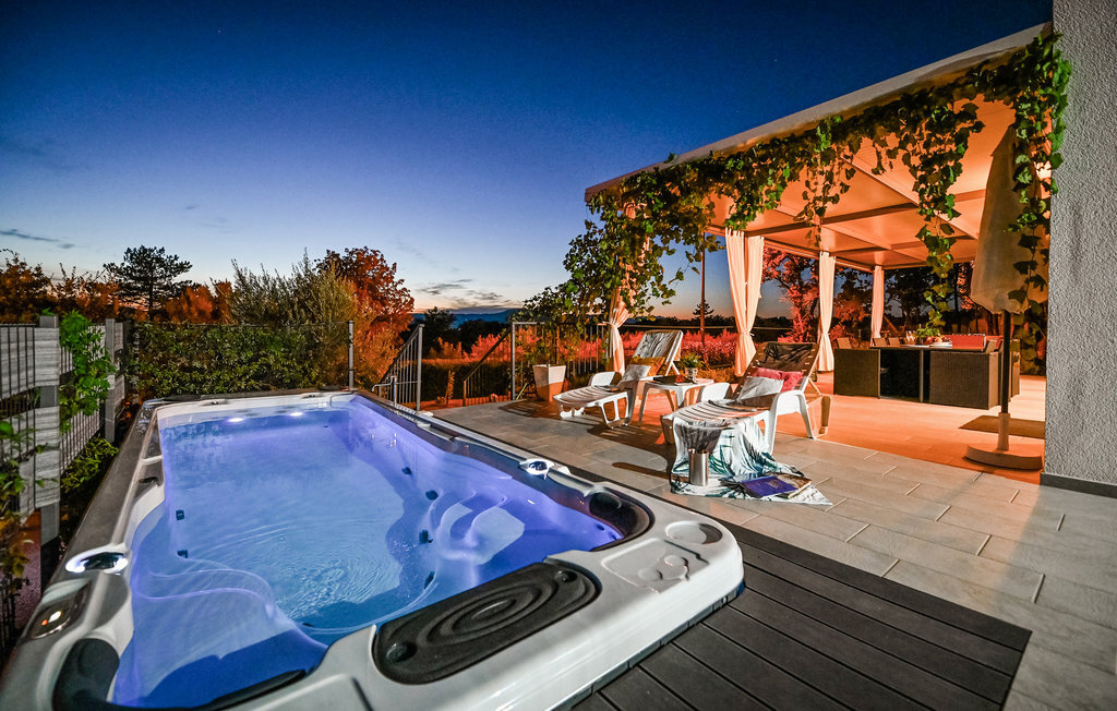 Bien-être à l'extérieur : Location de vacances disposant de chaises-longues et d'un ou plusieurs équipements tels que piscine extérieure, jacuzzi extérieur, lit à baldaquin de jardin etc...