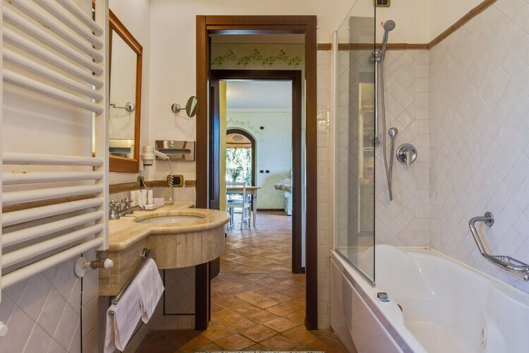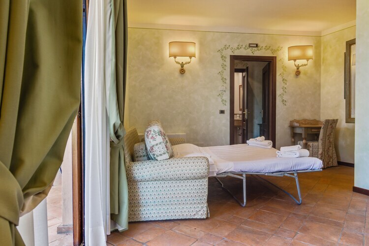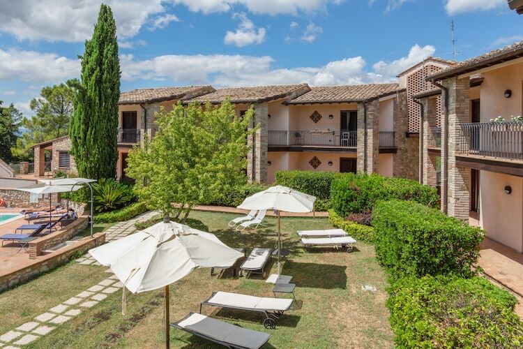 Les espaces extérieurs communs créent une atmosphère chaleureuse avec un jardin luxuriant, des chaises longues, une terrasse et un parasol pour des après-midi de détente. Une piscine commune rafraîchissante, ouverte de juin à septembre, permet de profiter du soleil de l'Ombrie. Pour les amateurs de bien-être et d'activités, la propriété propose une salle de sport, un sauna et un bain à bulles intérieur pour une touche de détente supplémentaire. Vous pourrez également profiter des courts de tennis. À proximité, les passionnés d'histoire pourront visiter les Cisterne Romane ou Poggio Turchino, tandis que les amateurs de golf pourront tester leurs compétences au Perugia Golf Club, situé à 38 km.