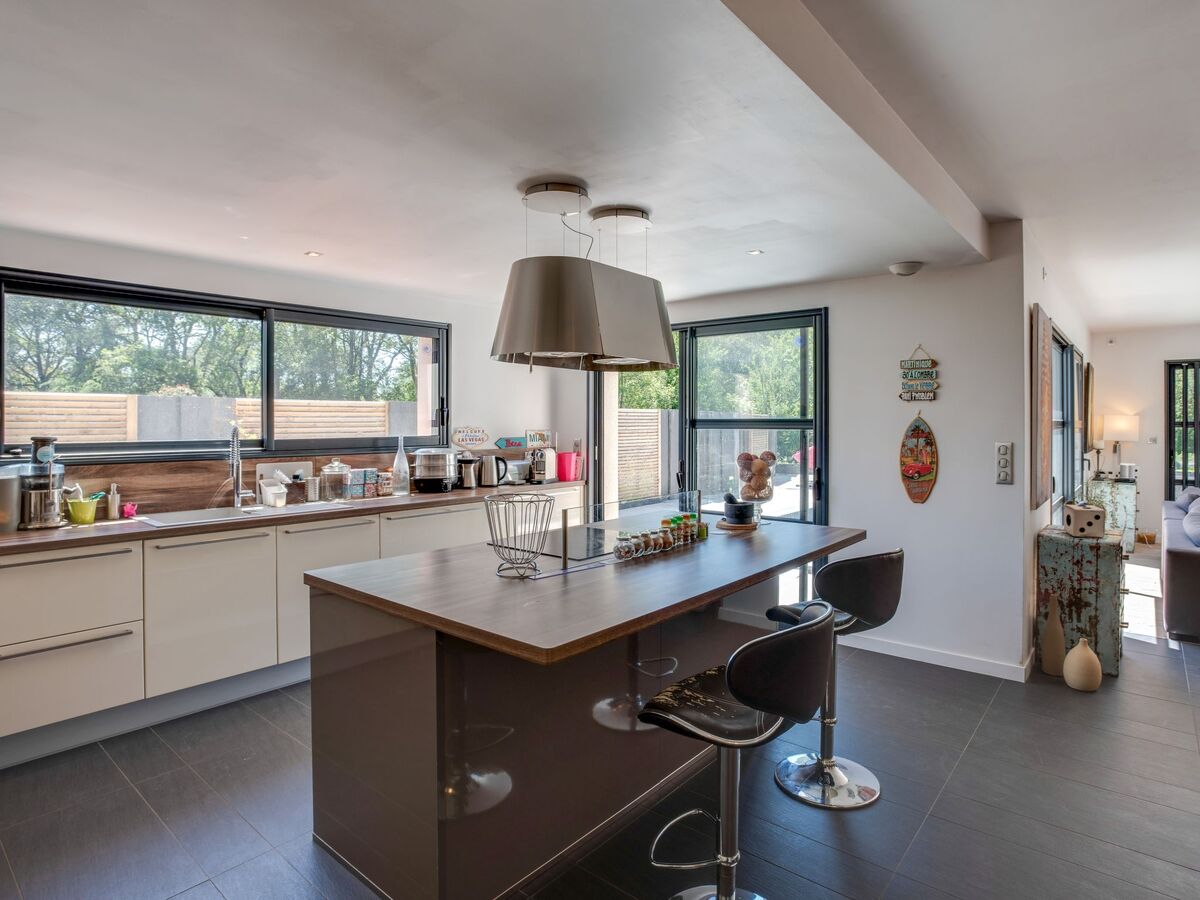 Cuisine ouverte (four, lave-vaisselle, 3 plaques vitrocéramiques, micro-ondes, congélateur, cafetière électrique).