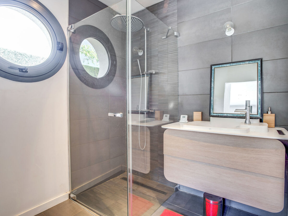 1 chambre avec 1 grand-lit (1 x 160 cm, longueur 200 cm), douche et TV (écran plat).