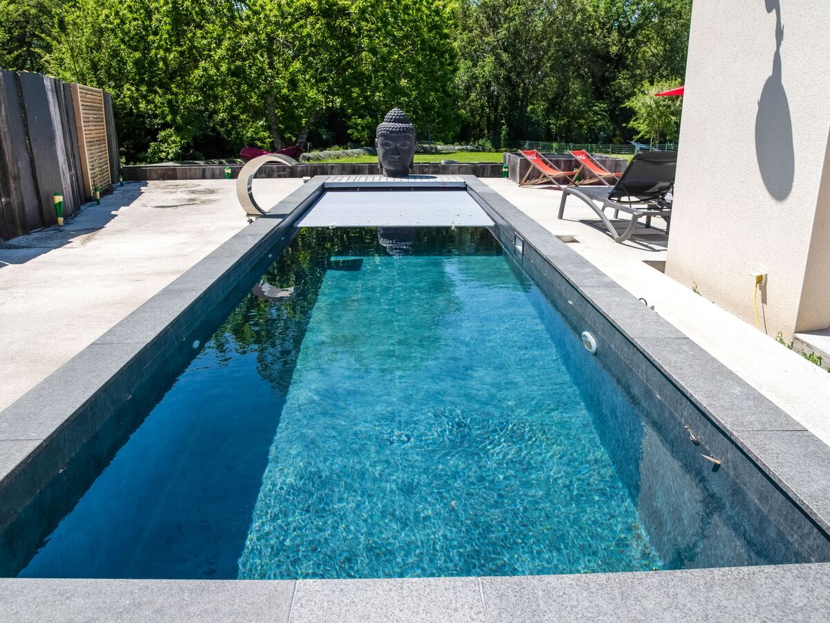 A usage privé: jardin 1'600 m2 (clôturé) avec pelouse, piscine rectangulaire, chauffée (3 x 11 m, profondeur 145 - 145 cm, disponibilité saisonnière: 01.Jun.