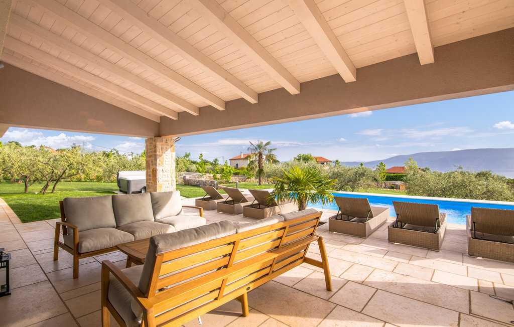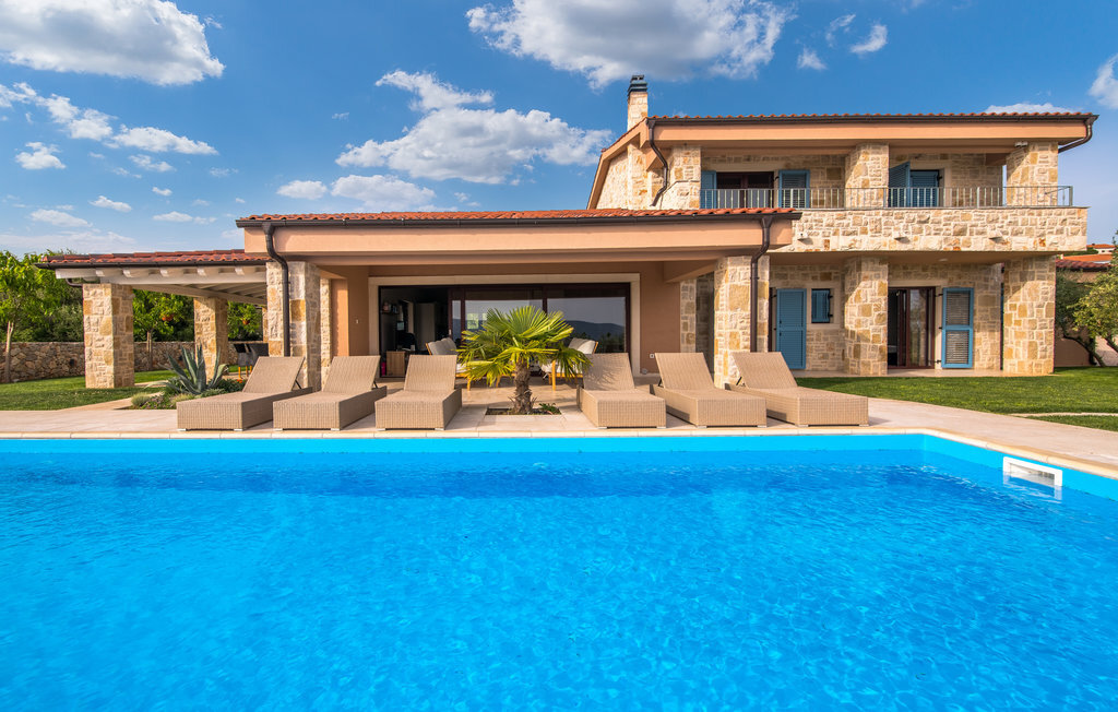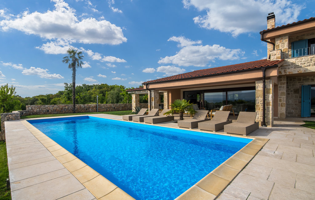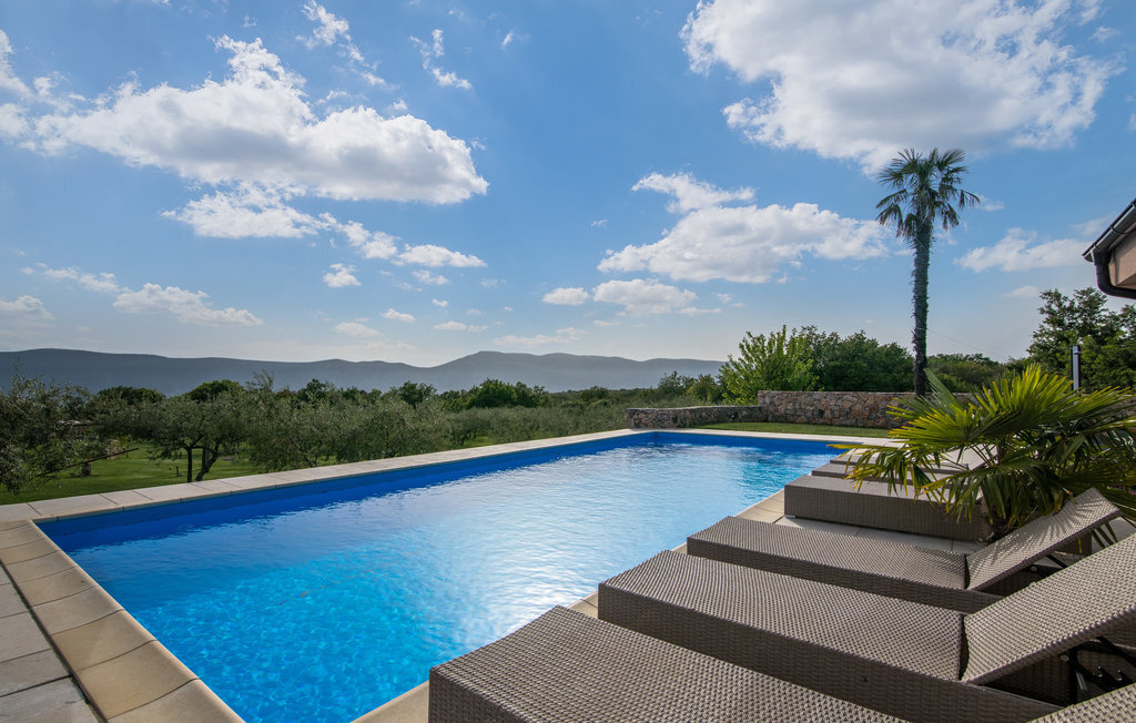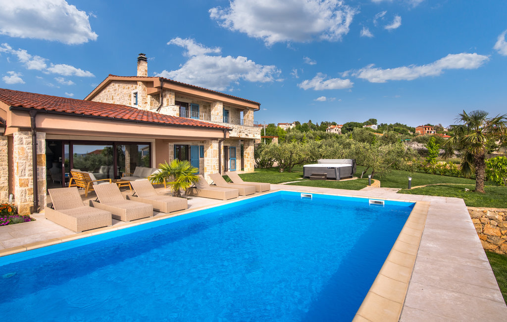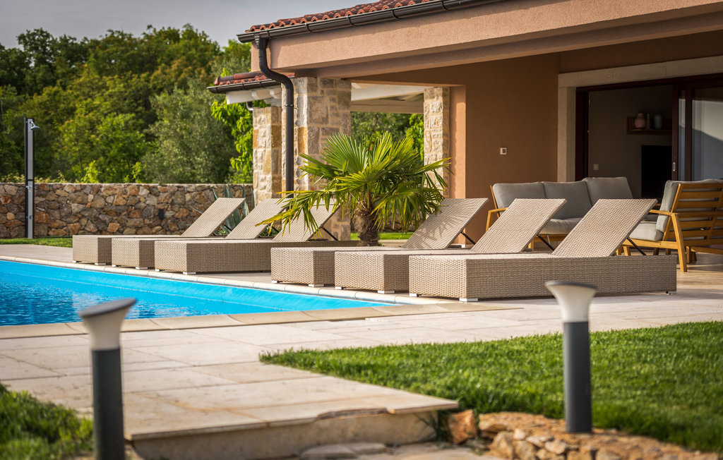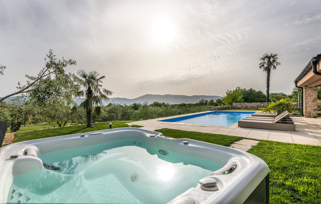 Bien-être à l'extérieur : Location de vacances disposant de chaises-longues et d'un ou plusieurs équipements tels que piscine extérieure, jacuzzi extérieur, lit à baldaquin de jardin etc...