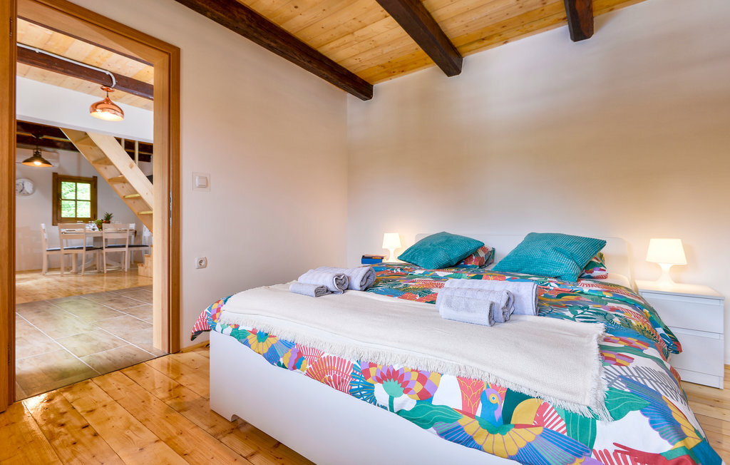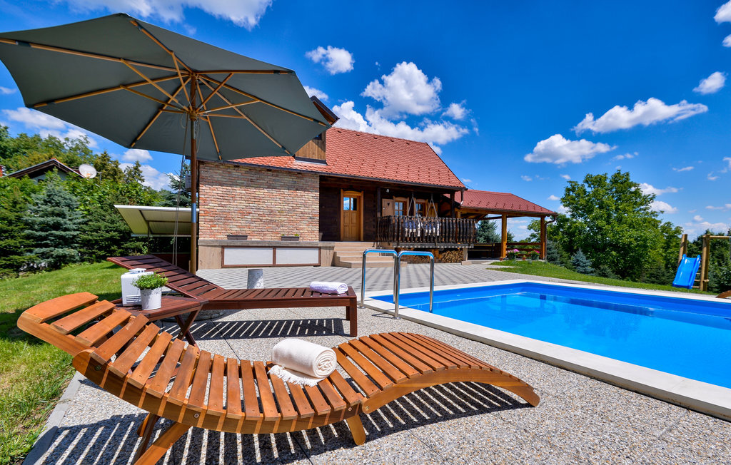Cette maison de vacances se trouve à Sveti Ivan Zelina, près de Zagreb. Elle est entourée de nature et construite dans le style indigène. Elle se compose d'une cave où les plus jeunes peuvent s'amuser, au rez-de-chaussée d'une cuisine avec coin repas et salon, d'une chambre et d'une salle de bain, et à l'étage de deux chambres et d'un WC. Le jardin verdoyant est dominé par une piscine avec un solarium pour se détendre et se rafraîchir lors des chaudes journées d'été. Sur la terrasse couverte à côté de la maison se trouve une cuisine d'été avec barbecue où l'on peut s'asseoir ensemble et préparer des grillades. Pendant votre séjour, ne manquez pas de visiter les belles églises et chapelles de Sveti Ivan Zelina. Nous vous recommandons également de visiter Zelingrad, qui se trouve au centre de la montagne Zelina et qui vous émerveillera avec les vestiges de l'ancienne ville et les tours de défense. Profitez de l'occasion pour visiter Hrvatsko Zagorje, connu pour ses magnifiques châteaux et musées, mais aussi pour ses excellents spas. Zagreb, la capitale de la Croatie, n'est qu'à 15 minutes en voiture. Vous y trouverez toutes les installations d'une grande ville, des sites culturels et des musées qui valent le détour : la cathédrale, Trg Sv. Marka, Gornji grad, Kamenita vrata, Jelaiev trg. Il y a les lacs Bundek et Jarun et le parc Maksimir avec un zoo. Visitez le parc naturel de Medvednica. Les amateurs de shopping seront ravis par les nombreux centres commerciaux et la ville elle-même propose de nombreuses manifestations culturelles et de divertissement comme l'été culturel de Zagreb, l'été à Bundek ou les soirées à Gri.