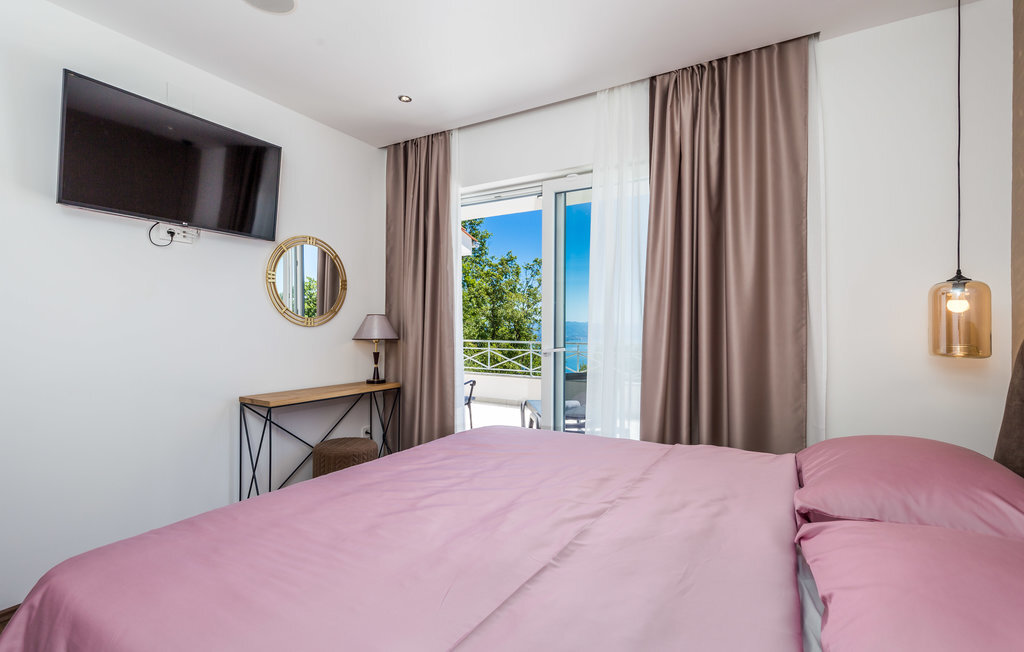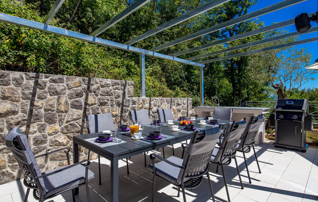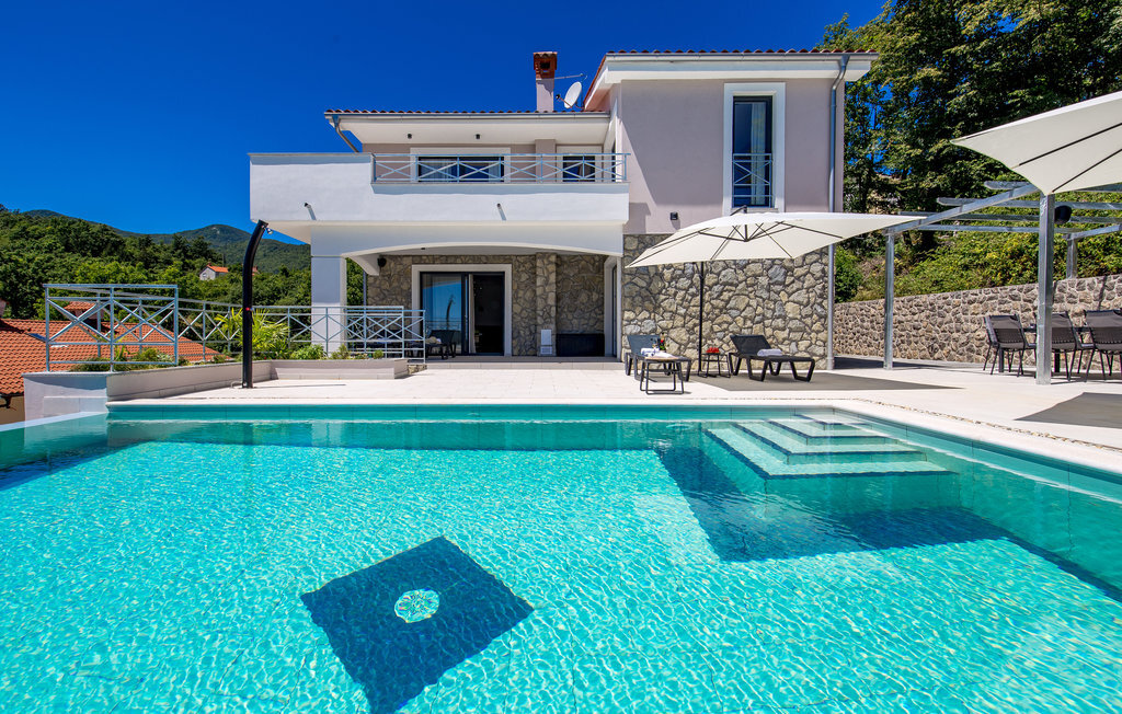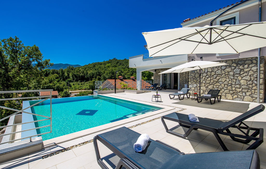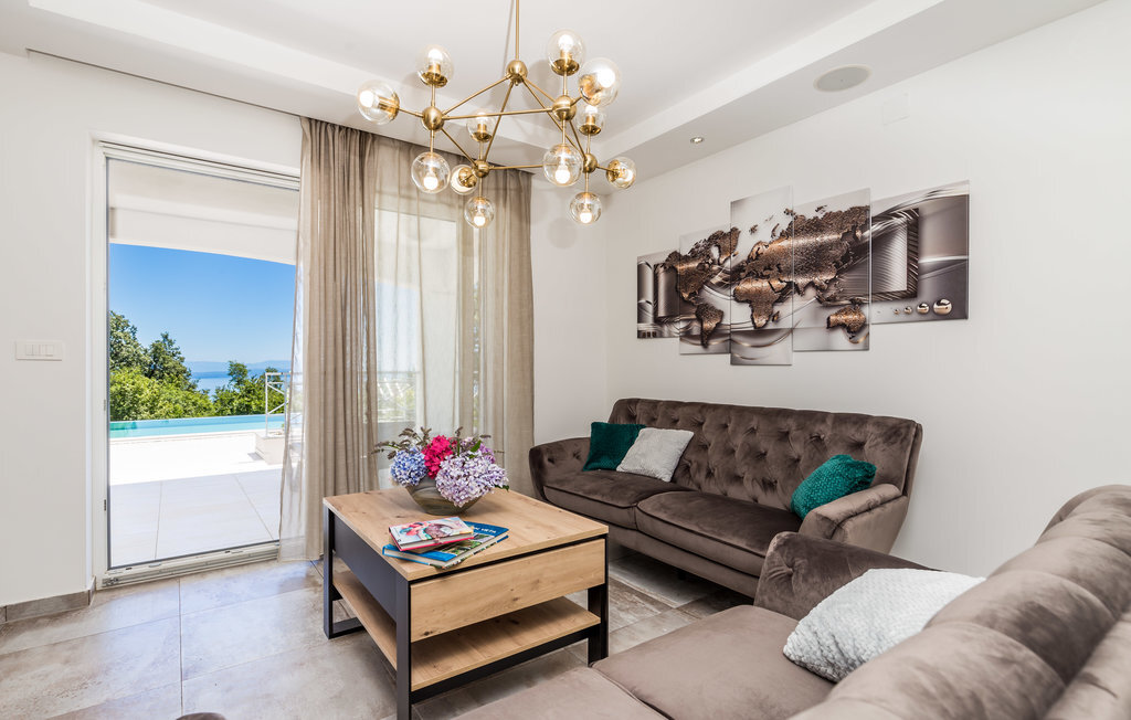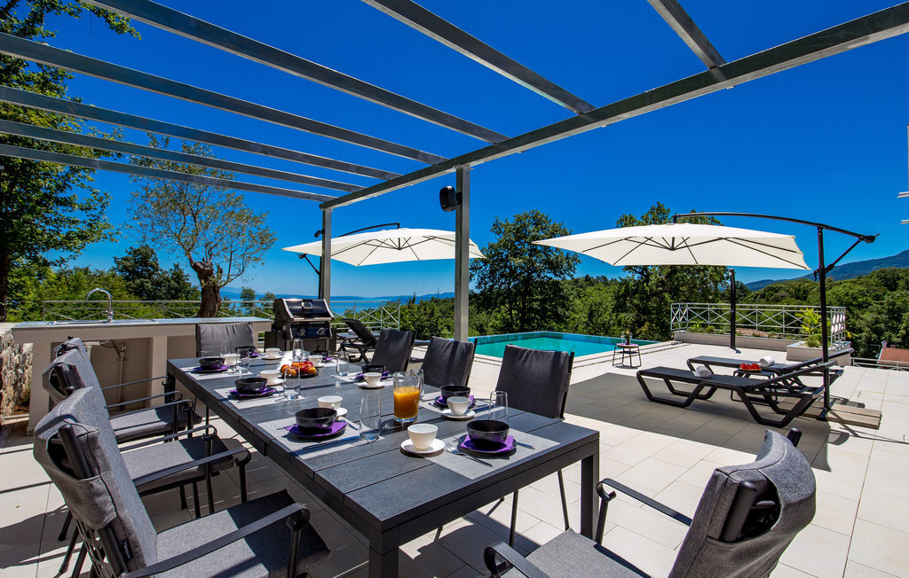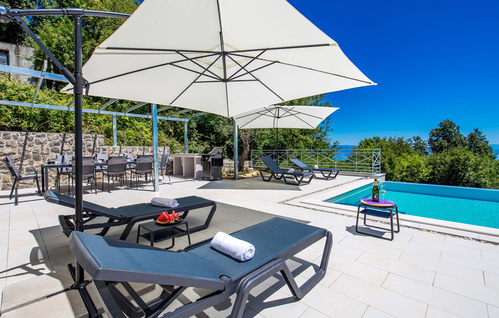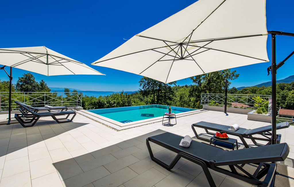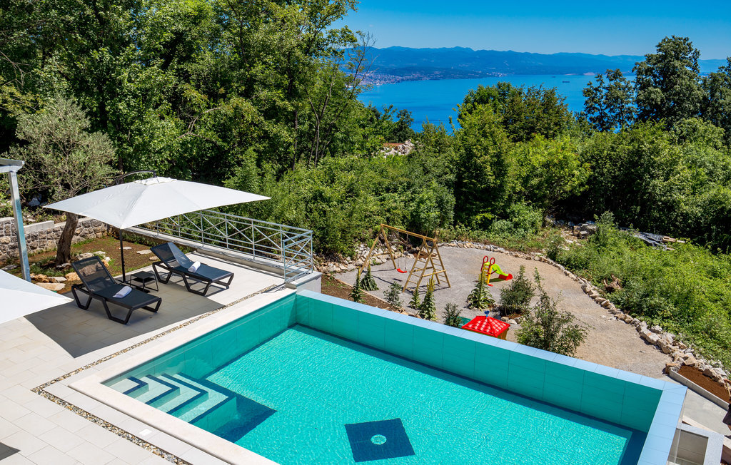 Loin de l'agitation de la ville, dans un magnifique environnement naturel au-dessus d'Opatija et Iii, se trouve cette maison de vacances avec piscine. L'intérieur est magnifiquement et harmonieusement aménagé. Rafraîchissez-vous dans la piscine à débordement en plein air ou détendez-vous en lisant votre livre préféré sur l'une des terrasses avec une vue magnifique sur Rijeka et le Kvarner. L'emplacement offre de nombreuses possibilités pour des vacances variées. Iii est connu comme le centre nautique de la Riviera d'Opatija avec son port de plaisance ACI qui offre des services nautiques complets. Au centre de la ville se trouve une grande plage qui a reçu le label "Pavillon bleu" et qui offre, outre les bains de soleil et la natation, une multitude d'activités sportives. Les fans de vacances actives complèteront leur séjour avec les nombreuses promenades et sentiers de l'arrière-pays. La célèbre promenade Lungomare traverse la localité et mène d'Opatija vers le sud jusqu'à Lovran. Opatija, toute proche, est le centre de la Riviera. Autrefois station thermale réputée, c'est aujourd'hui un centre de tourisme de bien-être et de santé très apprécié des touristes du monde entier. À Opatija, vous découvrirez une architecture urbaine intéressante, héritage de l'époque austro-hongroise. L'une d'entre elles est la Villa Angiolini, qui abrite le musée du tourisme. La vue sur la ville est complétée par les célèbres parcs et jardins d'Opatija, dont font certainement partie le parc Angiolina, le parc St James, le parc Margarita et les American Gardens, un parc magnifique qui s'étend sur huit mille mètres carrés et constitue une oasis de verdure et de paix au milieu des masses urbaines avec une vue unique sur le Kvarner. Profitez d'une offre culturelle, de divertissement et gastronomique variée. Opatija est le centre des manifestations culturelles, parmi lesquelles de nombreux concerts et festivals en été.