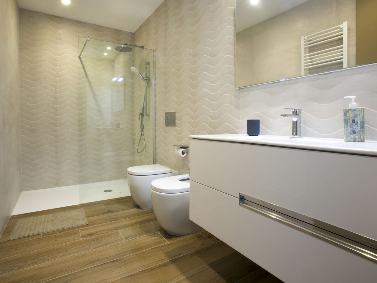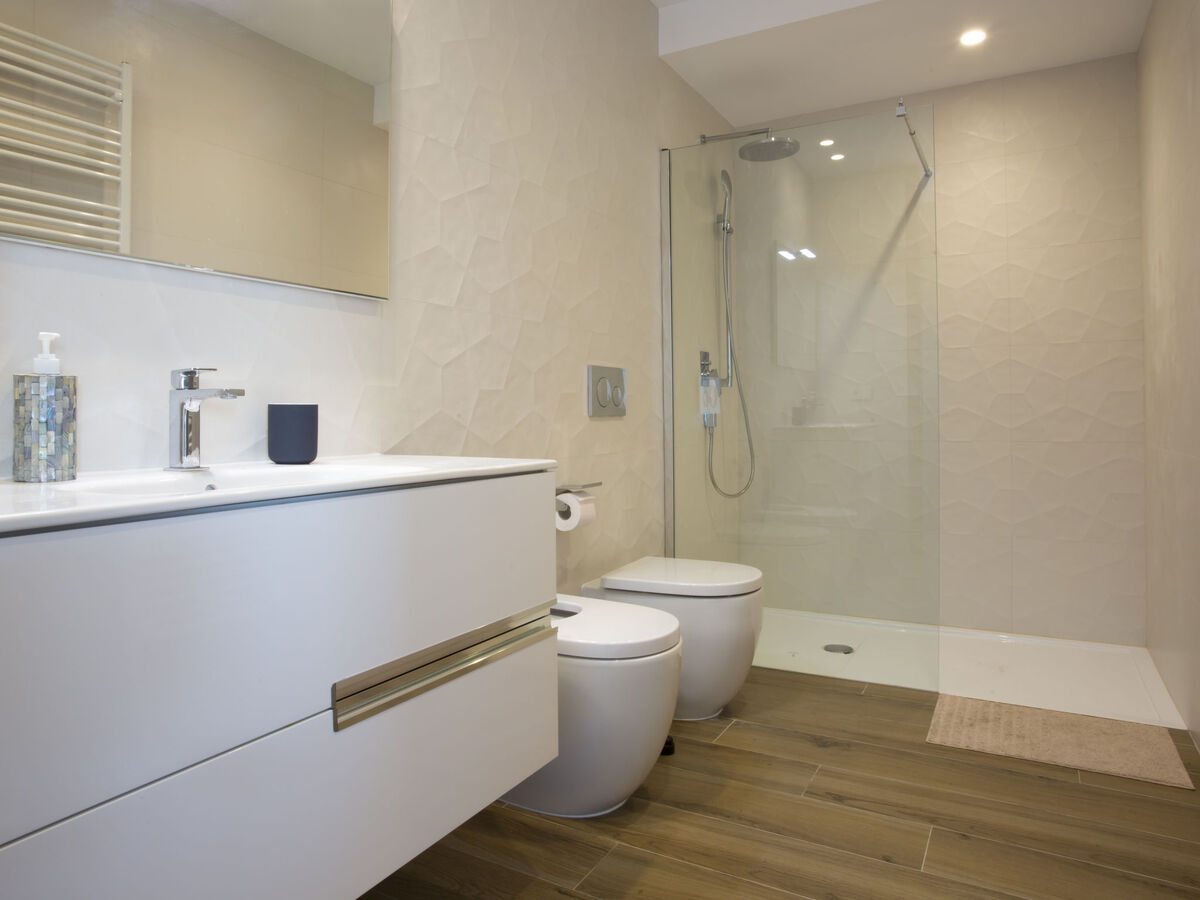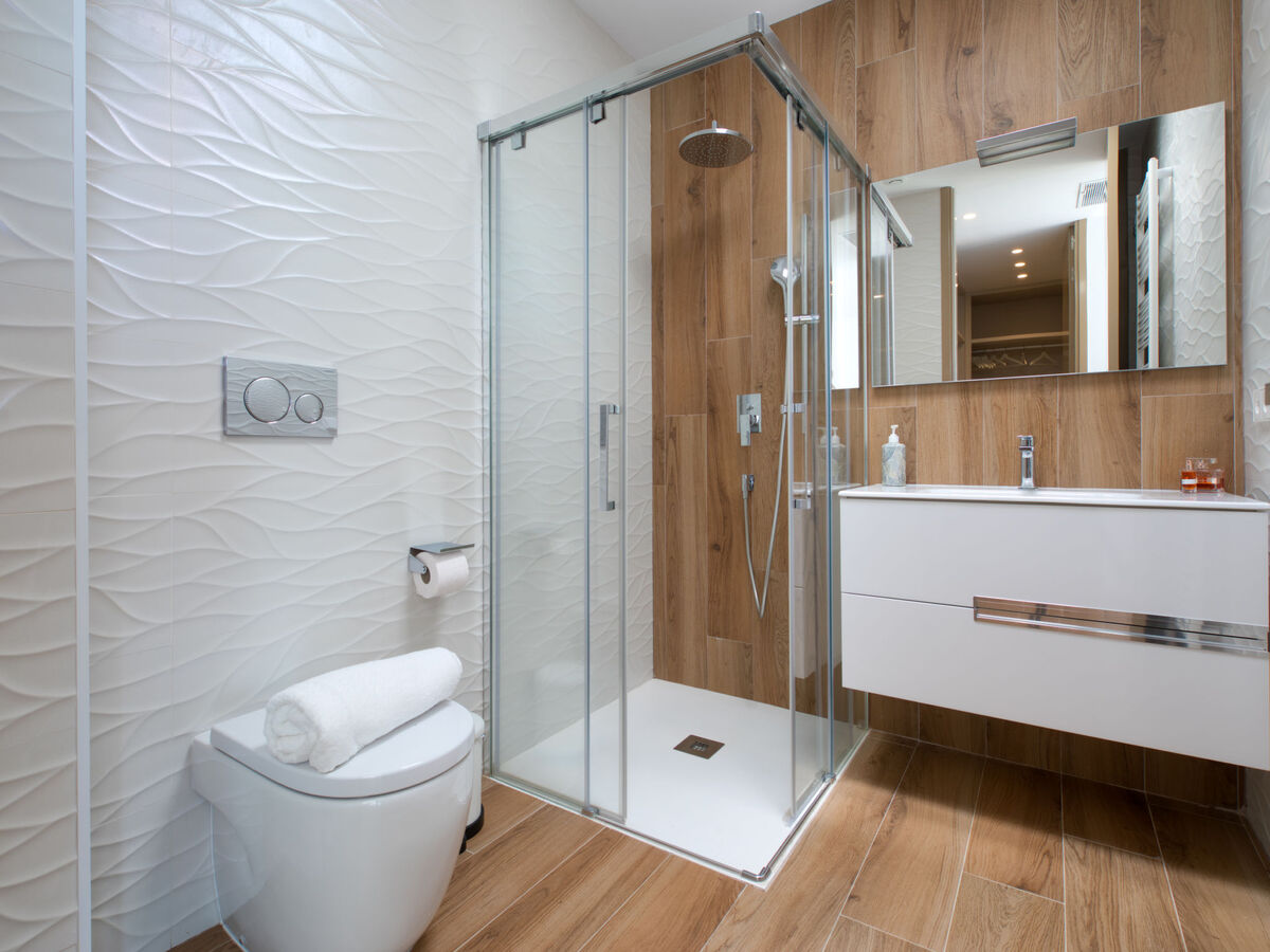 1 chambre avec 1 grand-lit (160 cm, longueur 200 cm), douche/WC.