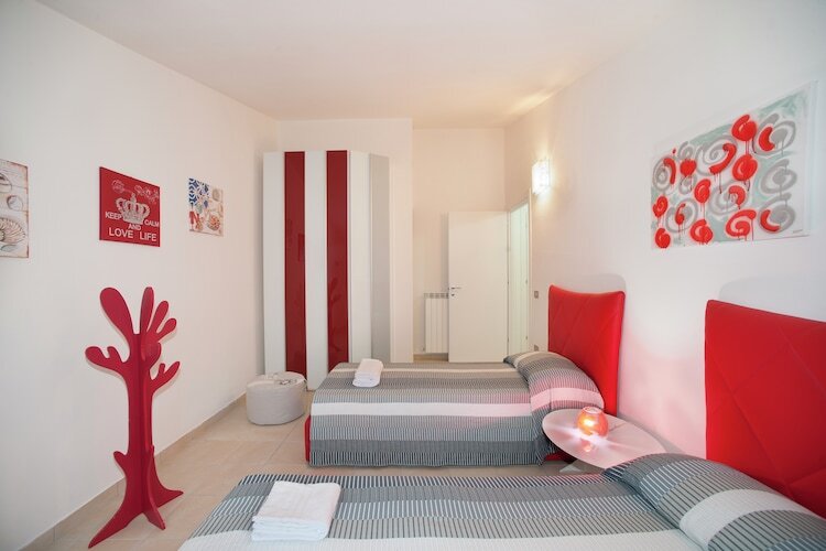 La villa s'étend sur trois étages et dispose de plusieurs cuisines, salles à manger et salons, tous équipés du confort moderne comme la télévision par satellite, une machine à expresso et un lave-vaisselle. Les chambres sont soigneusement agencées avec des lits king-size, des lits superposés et des lits simples, dont plusieurs avec salle de bain privative. Vous pourrez profiter d'un jardin privé clôturé, d'une grande terrasse et d'une piscine privée (ouverte de mai à septembre). Les équipements supplémentaires comprennent la climatisation, des douches extérieures, un barbecue, des chaises longues et des équipements adaptés aux enfants comme des chaises hautes et des lits bébé.