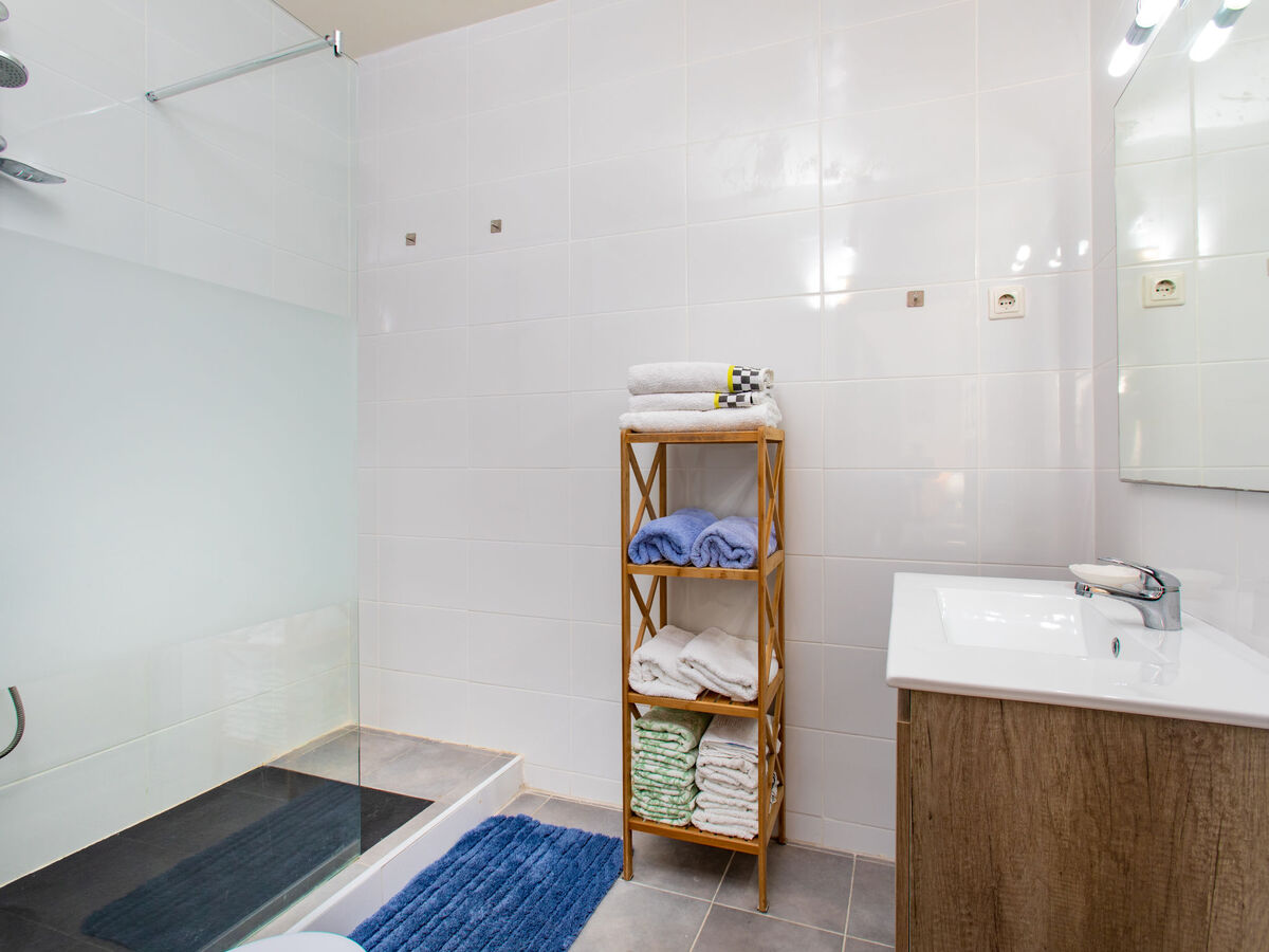 1 chambre avec 1 grand-lit (150 cm, longueur 200 cm), douche/WC et ventilateur.