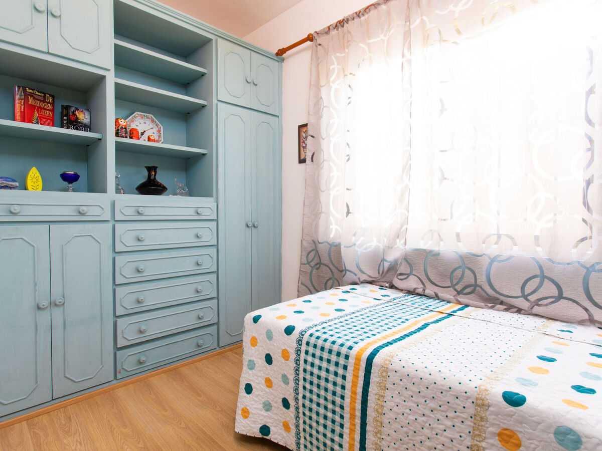 1 chambre avec 1 lit (90 cm, longueur 190 cm), ventilateur.