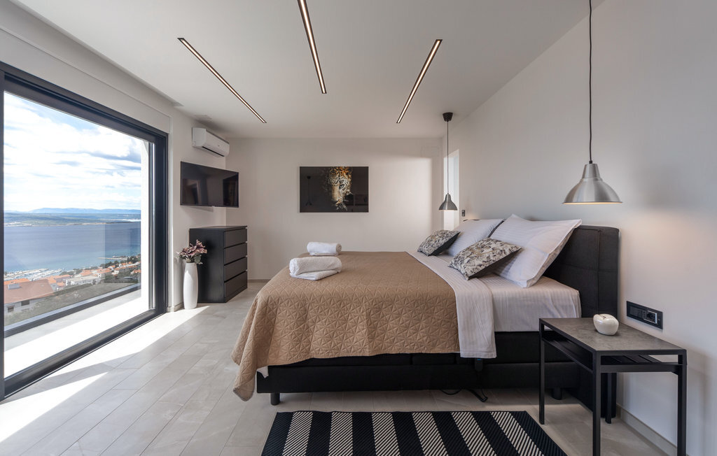 Cette maison de vacances confortable et luxueusement aménagée vous offre des vacances inoubliables à Crikvenica. Au rez-de-chaussée se trouvent un salon avec cuisine et salle à manger, 1 chambre à coucher, 1 salle de bain et des toilettes supplémentaires, tandis qu'au premier étage se trouvent 3 chambres à coucher, 3 salles de bain et une salle de séjour avec un appareil d'entraînement multifonctionnel.