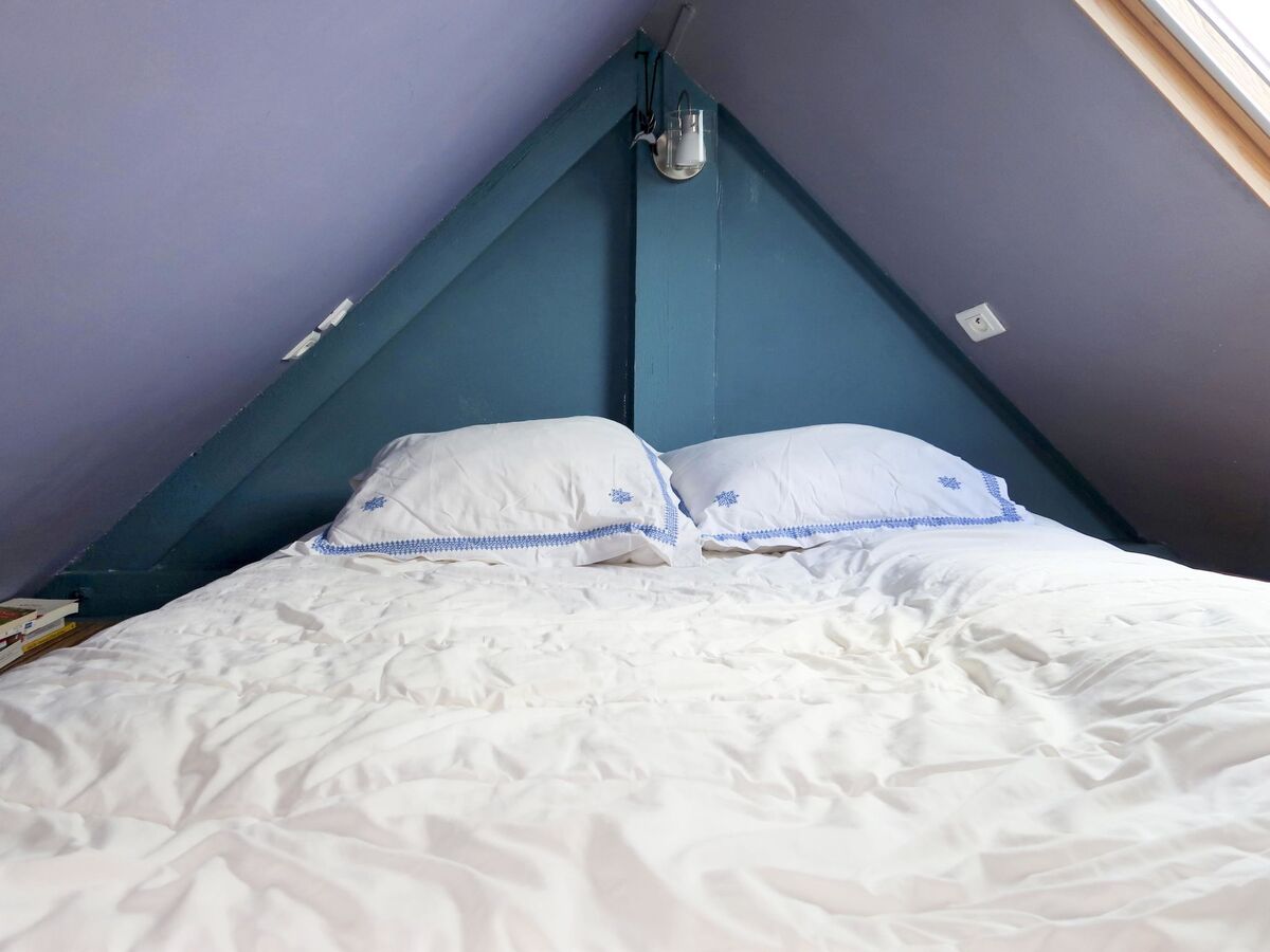 2ème étage: (échelle) 1 chambre, mansardée hauteur plafond 120 - 125 cm avec 1 couchage (140 cm, longueur 190 cm).
