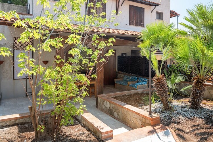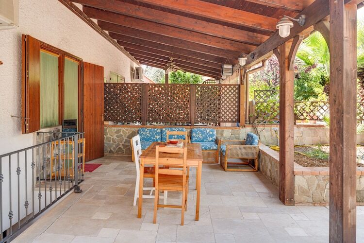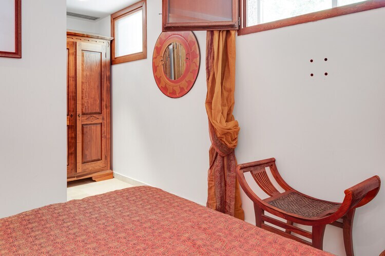Rez-de-chaussée: (Salle de séjour(table), cuisine ouverte(foyer, bouilloire, plaque de cuisson, hotte, cafetière/percolateur, machine à café expresso, four, micro ondes, combinaison réfrigérateur/congélateur), chambre(lit double), salle de bains(douche, lavabo, WC, bidet, lave-linge ), véranda(patio), climatisation) Sous-sol: (chambre(Lit superposé), salle de bains(douche, lavabo, WC, bidet)) jardin