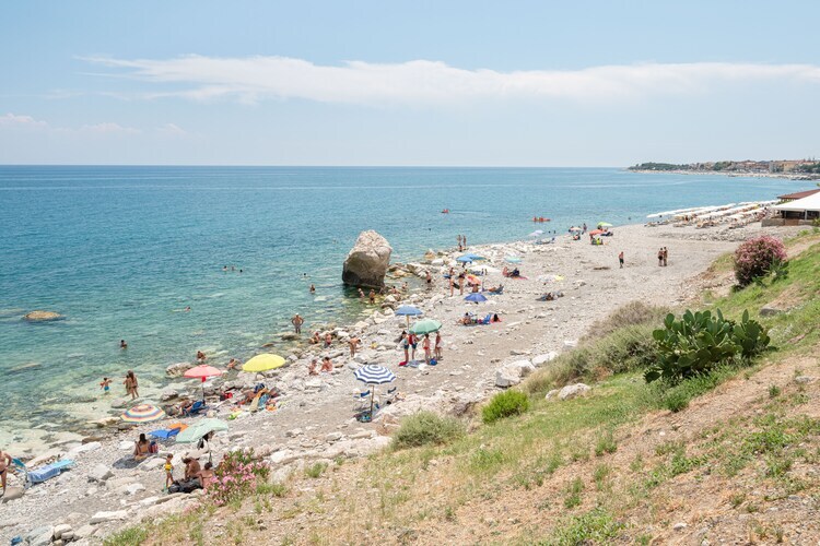 Situé à seulement 200 mètres de la plage, vous découvrirez l'emblématique château de Roseto qui se dresse majestueusement le long de la côte, offrant un cadre idéal pour des promenades au coucher du soleil ou des pique-niques au pied du château. À seulement quelques minutes se trouvent des supermarchés, des boutiques et une promenade animée au charme authentique du sud de l'Italie. En moins de 30 minutes, évadez-vous dans le luxuriant parc national du Pollino pour des randonnées en forêt, des vues sur les montagnes et une brise rafraîchissante.