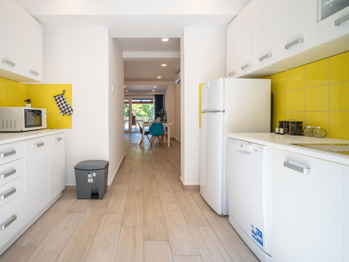 Cuisine ouverte (lave-vaisselle, 4 plaques vitrocéramiques, bouilloire électrique, micro-ondes, congélateur, cafetière électrique).