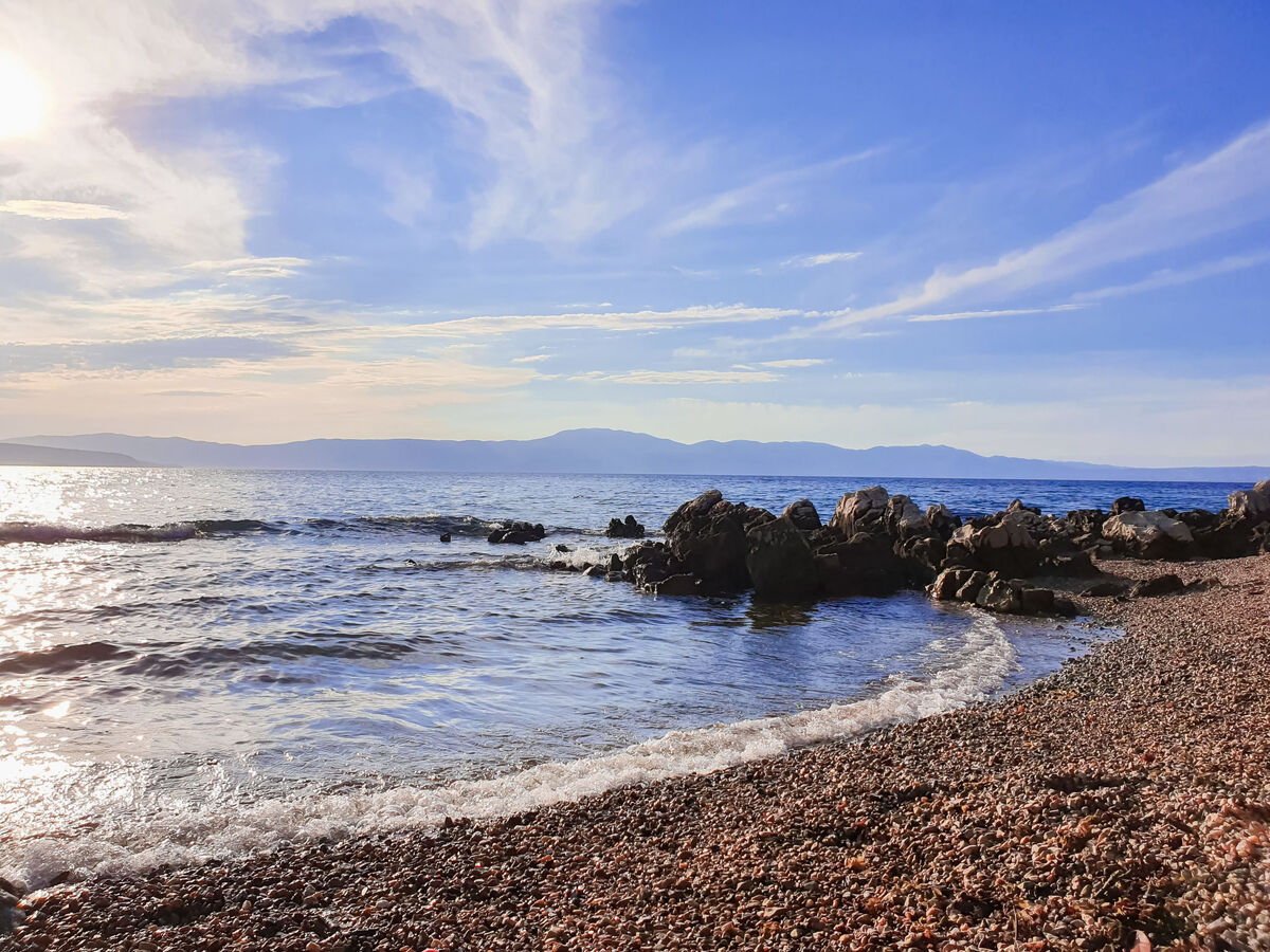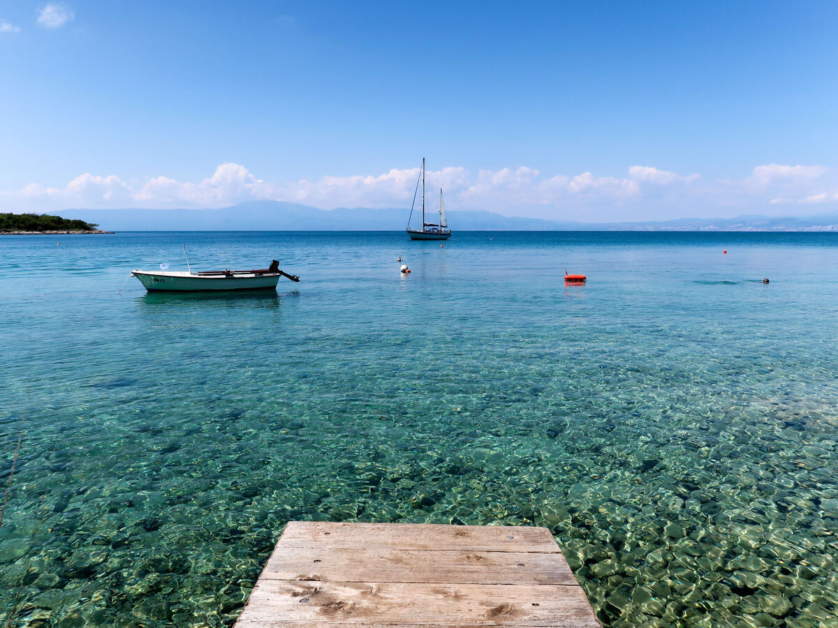 À 1.5 km du centre de Njivice, situation tranquille, ensoleillée, à 20 m de la mer, à 20 m de la plage, dans la verdure.