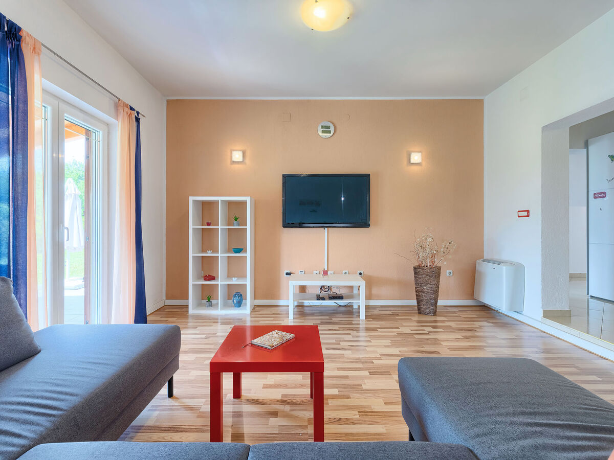 Aménagement plaisant: séjour/salle à manger avec TV (satellite) et air-conditionné.