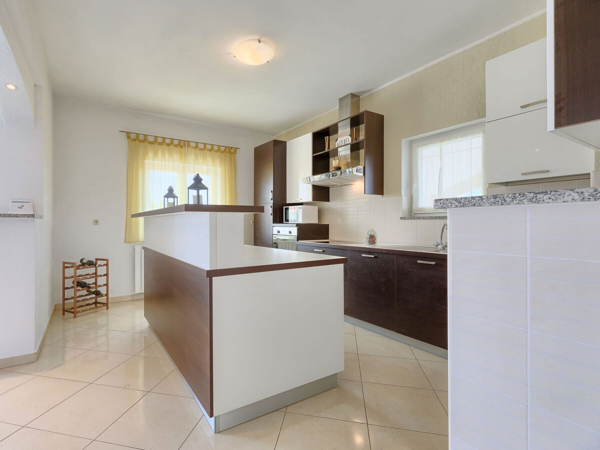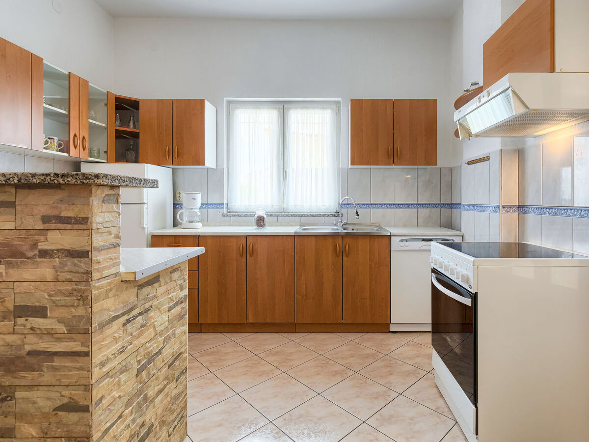 Cuisine ouverte (four, lave-vaisselle, 4 plaques vitrocéramiques, micro-ondes, congélateur, cafetière électrique).