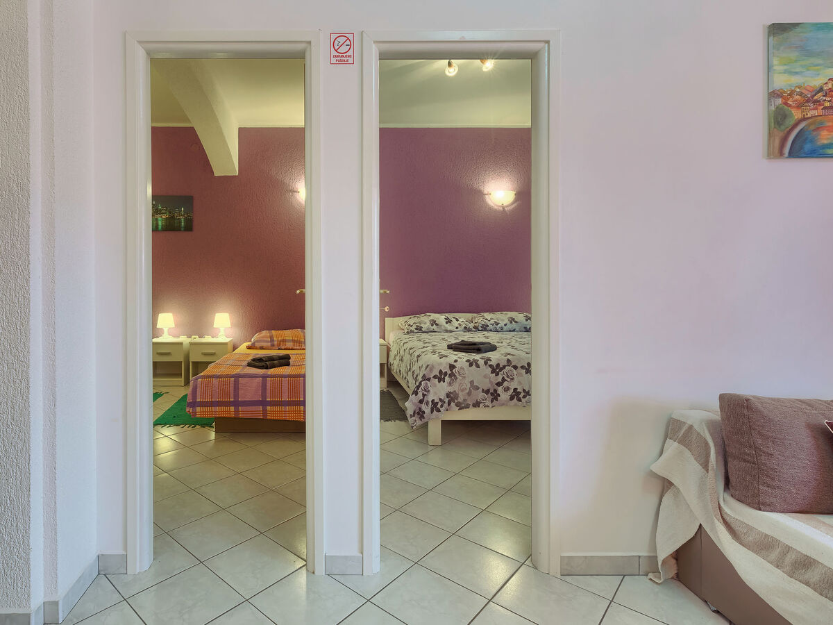 3 chambres, chaque chambre avec: 1 lit double (2 x 80 cm, longueur 190 cm).