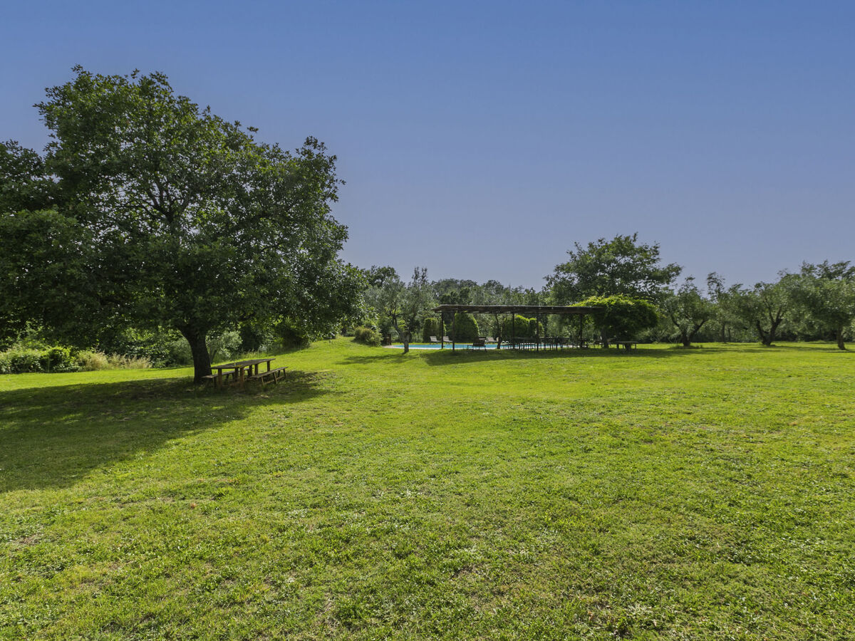 En commun: terrain 12'000 m2 avec pelouse et arbres, jardin propice à la détente, piscine (18 x 8 m, profondeur 120 cm, disponibilité saisonnière: 07.Jun.