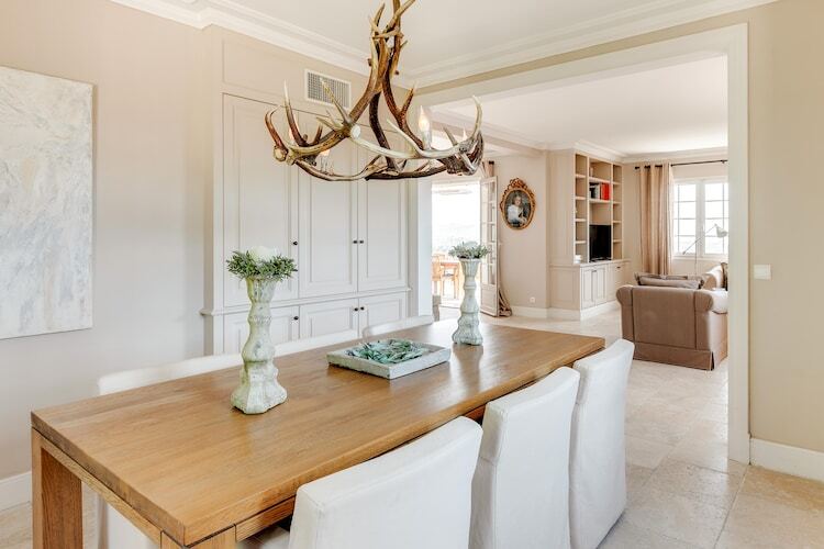 Rez-de-chaussée: (Salle de séjour(TV, coin salon(10 personnes), système de musique sans fil), cuisine(table(10 personnes), foyer, hotte, machine à café expresso, four, gaufrier, micro ondes, lave-vaisselle , combinaison réfrigérateur/congélateur), chambre(Lit superposé), salle de bains(douche), WC, terrasse sur le toit) Au 1er étage: (Entrée, Salle de séjour(TV, cheminée, coin salon(10 personnes), Lecteur DVD, station d'acceuil téléphone, système de musique sans fil, Lecteur CD), salle à manger(table, coin salon(10 personnes)), cuisine(foyer, bouilloire, grille-pain, plaque de cuisson, machine à café expresso, four, grill, micro ondes, lave-vaisselle , combinaison réfrigérateur/congélateur, Mixeur), WC, terrasse) Au 2ème étage: (chambre avec salle de bains(lit double(180 x 200 cm), TV, cheminée, vidéo, baignoire-douche, WC), chambre avec salle de bains(lit double(180 x 200 cm), baignoire-douche, WC), chambre avec salle de bains(lit double(180 x 200 cm), baignoire-douche, WC), chambre avec salle de bains(lit double(180 x 200 cm), baignoire-douche, WC), terrasse) garage, jardin, barbecue, piscine(privé, chauffée, 10 x 5 m.)