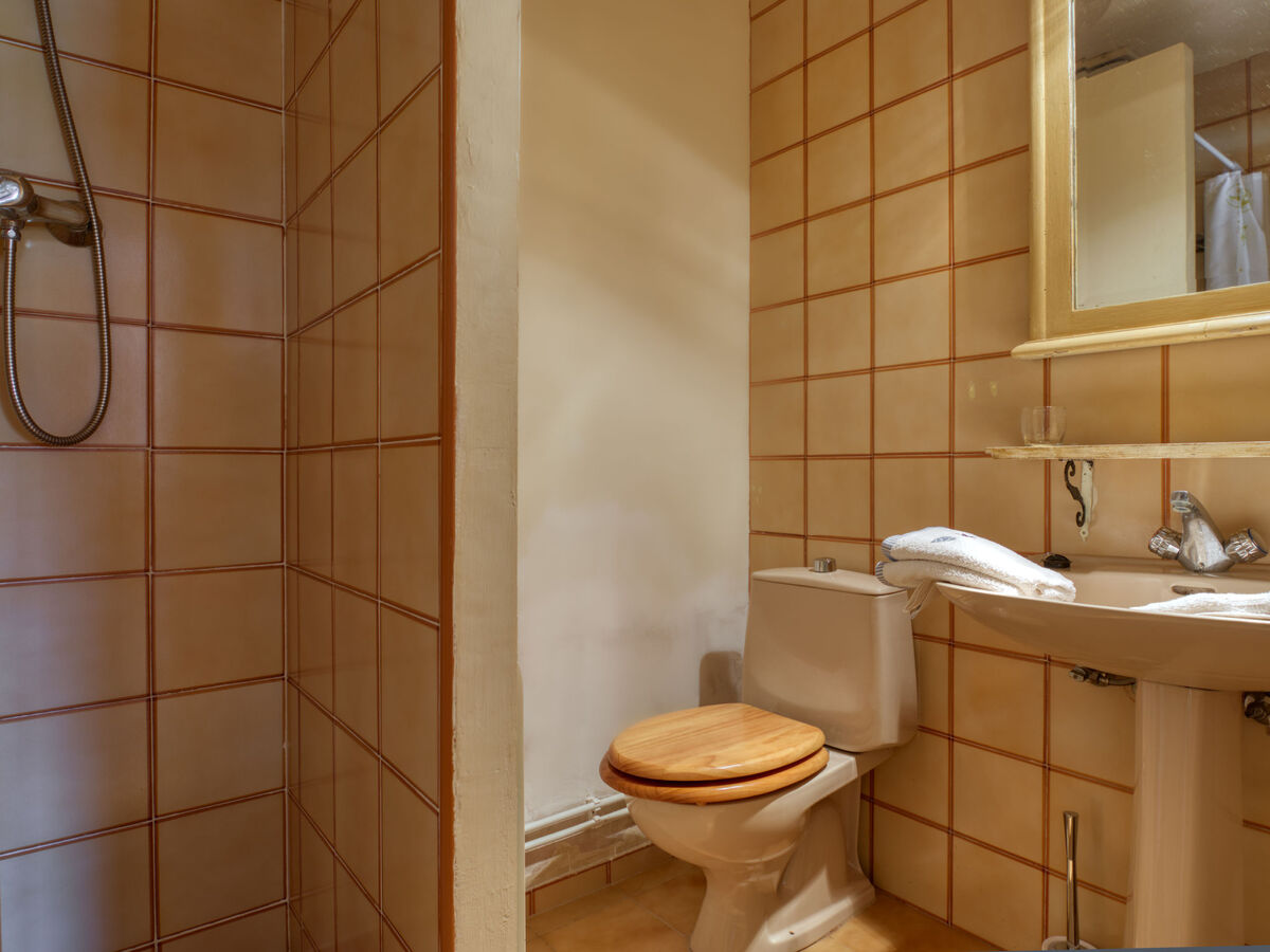 1 chambre avec 1 grand-lit (140 cm, longueur 190 cm), bain/WC.
