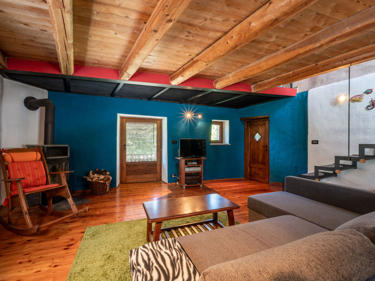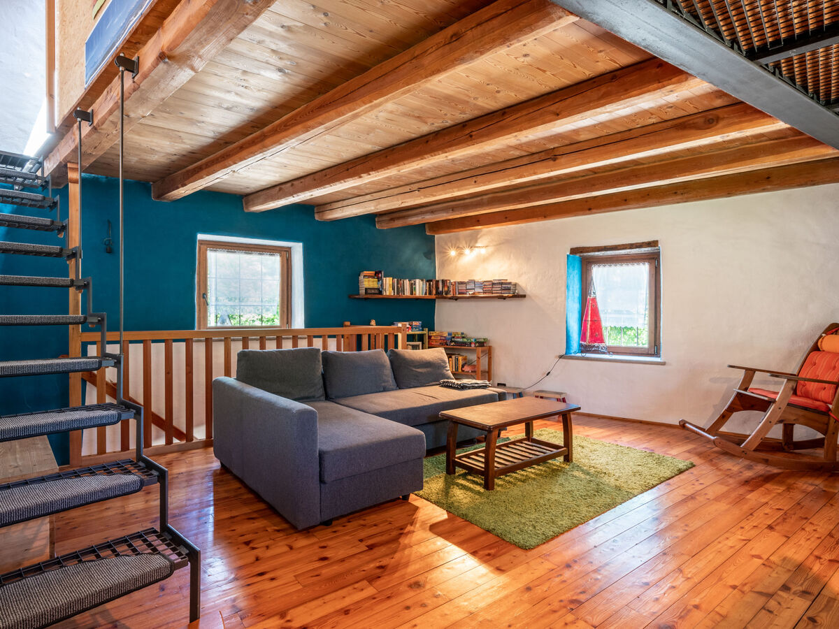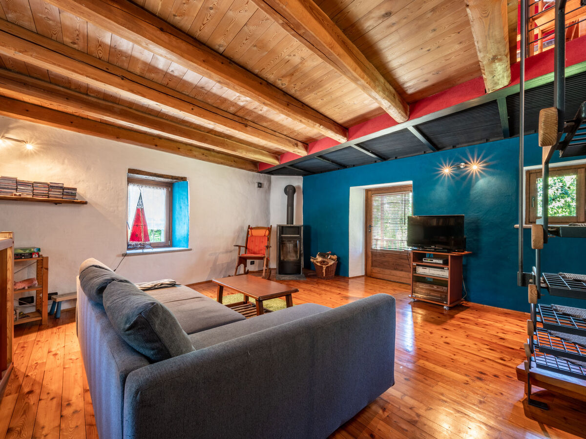 À l'étage supérieur: séjour/chambre à coucher avec 1 divan-lit double, TV (satellite) et radiateur.