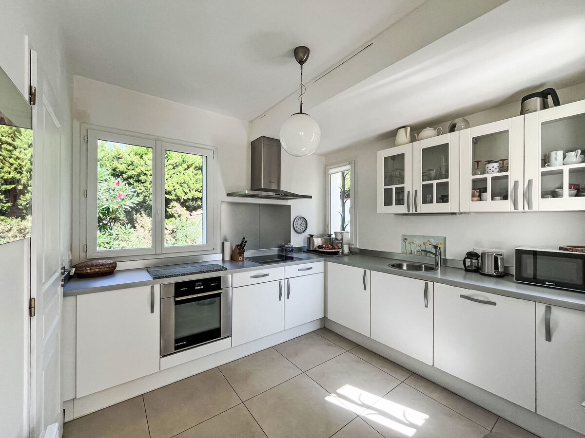 Cuisine ouverte (four, lave-vaisselle, 3 plaques à induction, grille-pain, bouilloire électrique, micro-ondes, congélateur, cafetière électrique).