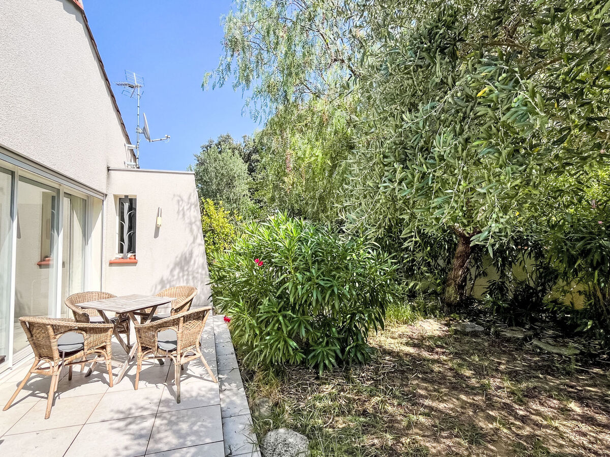 A usage privé: jardin 630 m2 (clôturé) avec plantes et arbres, piscine rectangulaire, protégée (6 x 3 m, profondeur 140 - 165 cm, disponibilité saisonnière: 01.Mai.