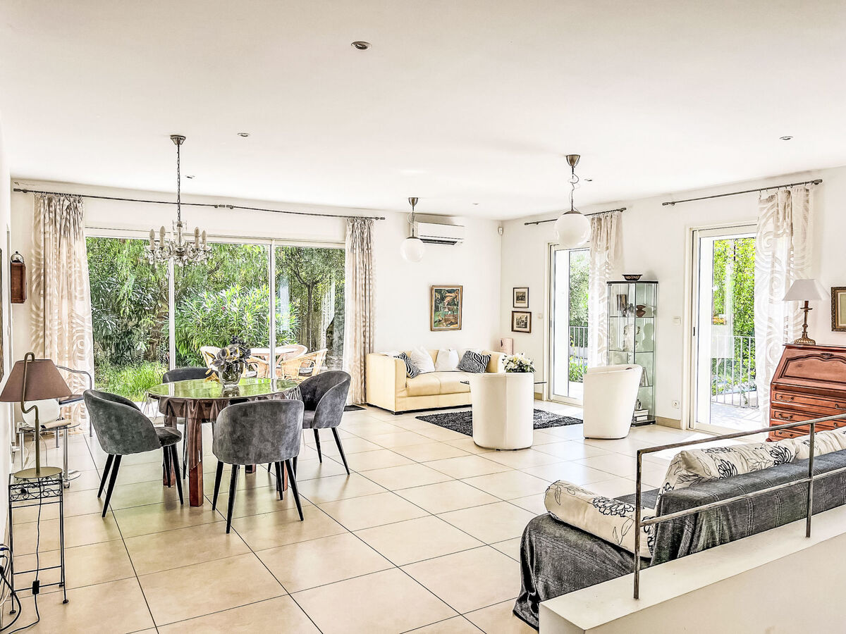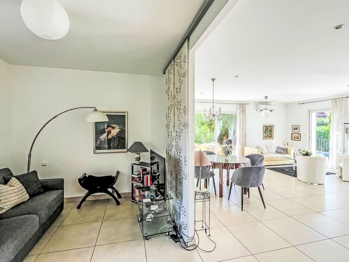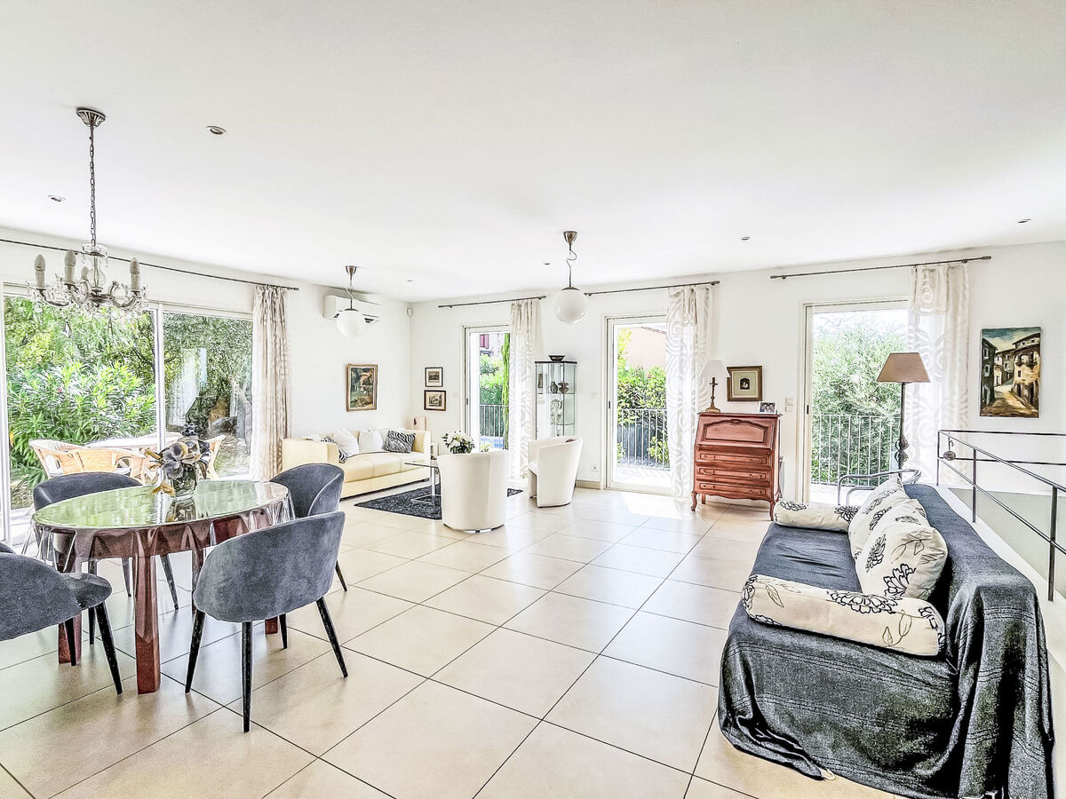 À l'étage supérieur: séjour/salle à manger avec table pour les repas et air-conditionné.