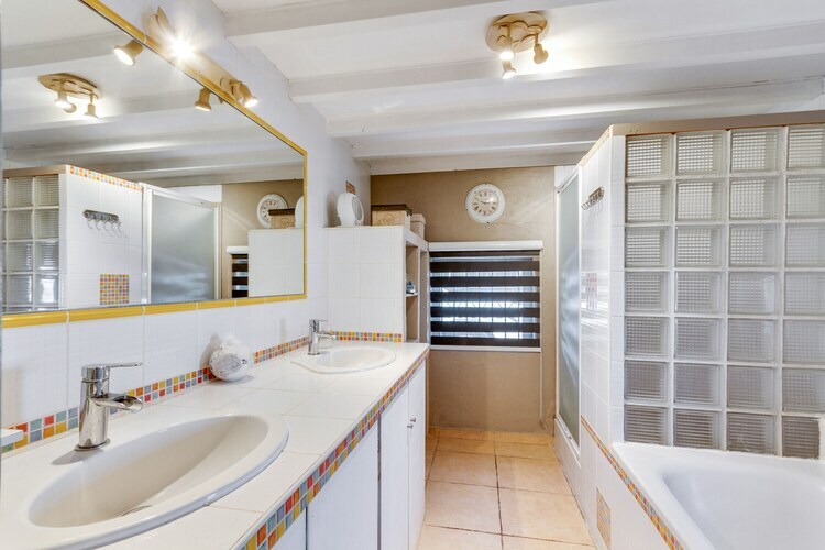Rez-de-chaussée: (cuisine ouverte(bouilloire, grille-pain, plaque de cuisson(induction), hotte, machine à café expresso, four, micro ondes, lave-vaisselle , combinaison réfrigérateur/congélateur), salle à manger-salon(TV(écran plat), table(12 personnes), cheminée, marquise), chambre avec salle de bains(lit double(160 x 200 cm), baignoire, douche, lavabo, lavabo), mezzanine(lit simple(90 x 200 cm), lit simple(90 x 200 cm)), WC, chauffage(chauffage par le sol)) Au 1er étage: (chambre(Lit superposé, TV), chambre(lit double(160 x 200 cm)), chambre(lit double(140 x 200 cm)), salle de bains(douche, lavabo, WC)) cuisine d'été, terrasse(couverte), mobilier de jardin, parking, piscine(privé, 6 x 3 m.), terrain de pétanque, salon de jardin, plancha