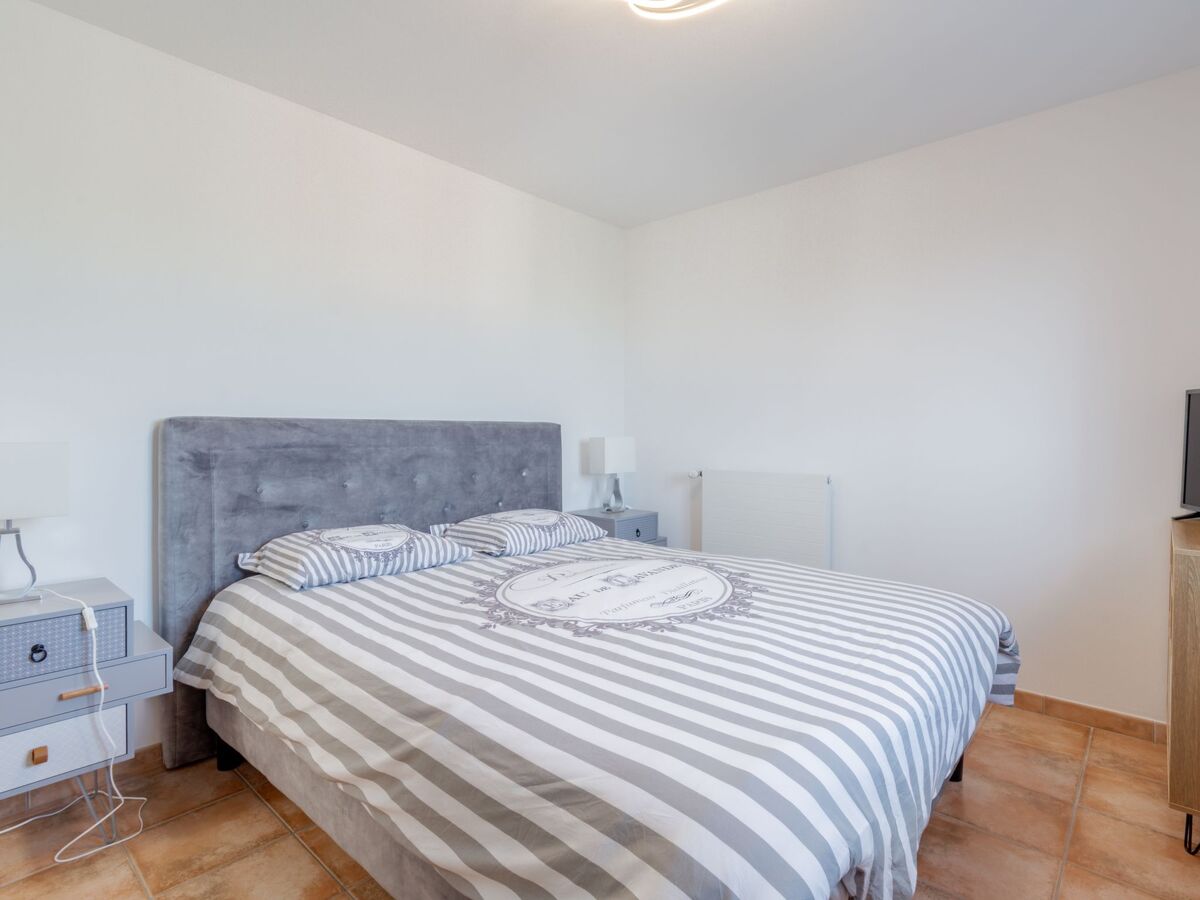 1 chambre avec 1 grand-lit (1 x 160 cm, longueur 200 cm), salle de bains et TV (écran plat).