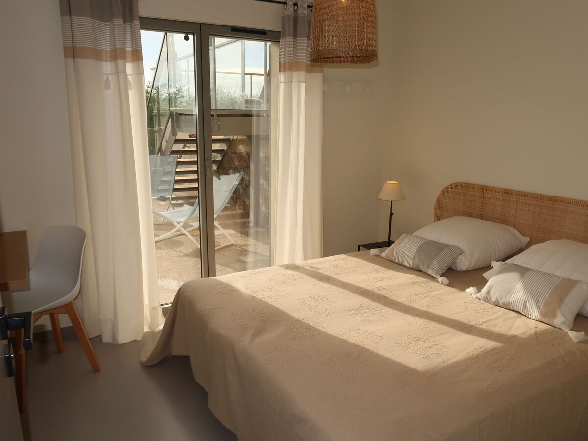 1 chambre avec 1 grand-lit (140 cm, longueur 200 cm).