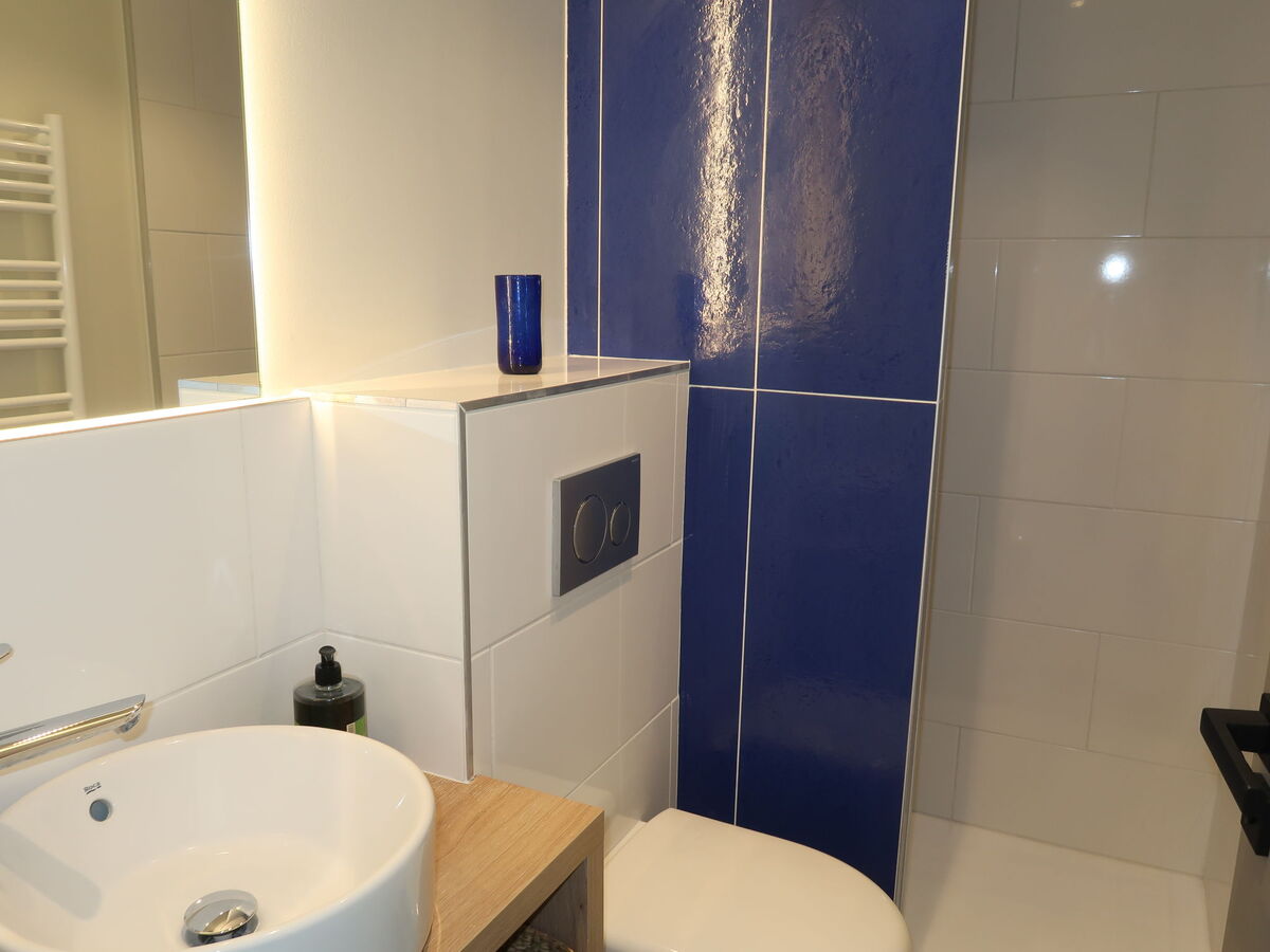 Studio avec 2 lits (80 cm, longueur 200 cm), douche/WC.