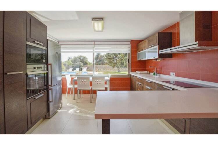 Rez-de-chaussée: (cuisine(micro ondes, lave-vaisselle , combinaison réfrigérateur/congélateur), salle à manger-salon(TV(satellite), Lecteur DVD), chambre(2x lit simple(90 x 190 cm), climatisation), chambre(2x lit simple(90 x 190 cm), climatisation), chambre(lit double(180 x 200 cm), climatisation), chambre avec salle de bains(lit double(180 x 200 cm), douche, lavabo, WC, bidet, climatisation), salle de bains(douche, lavabo, WC, bidet), WC(lavabo)) Au 1er étage: (chambre avec salle de bains(lit double(180 x 200 cm), douche, lavabo, WC, bidet, climatisation)) douche(extérieur), climatisation, terrasse, jardin, mobilier de jardin, transats, barbecue, parking, parasol, piscine(privé, 10 x 5 m.), Balançoire