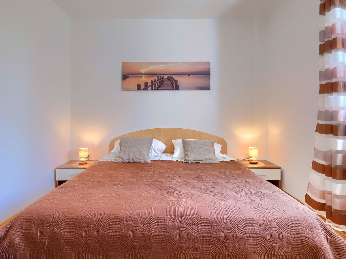 1 chambre avec 1 grand-lit (160 cm, longueur 200 cm).