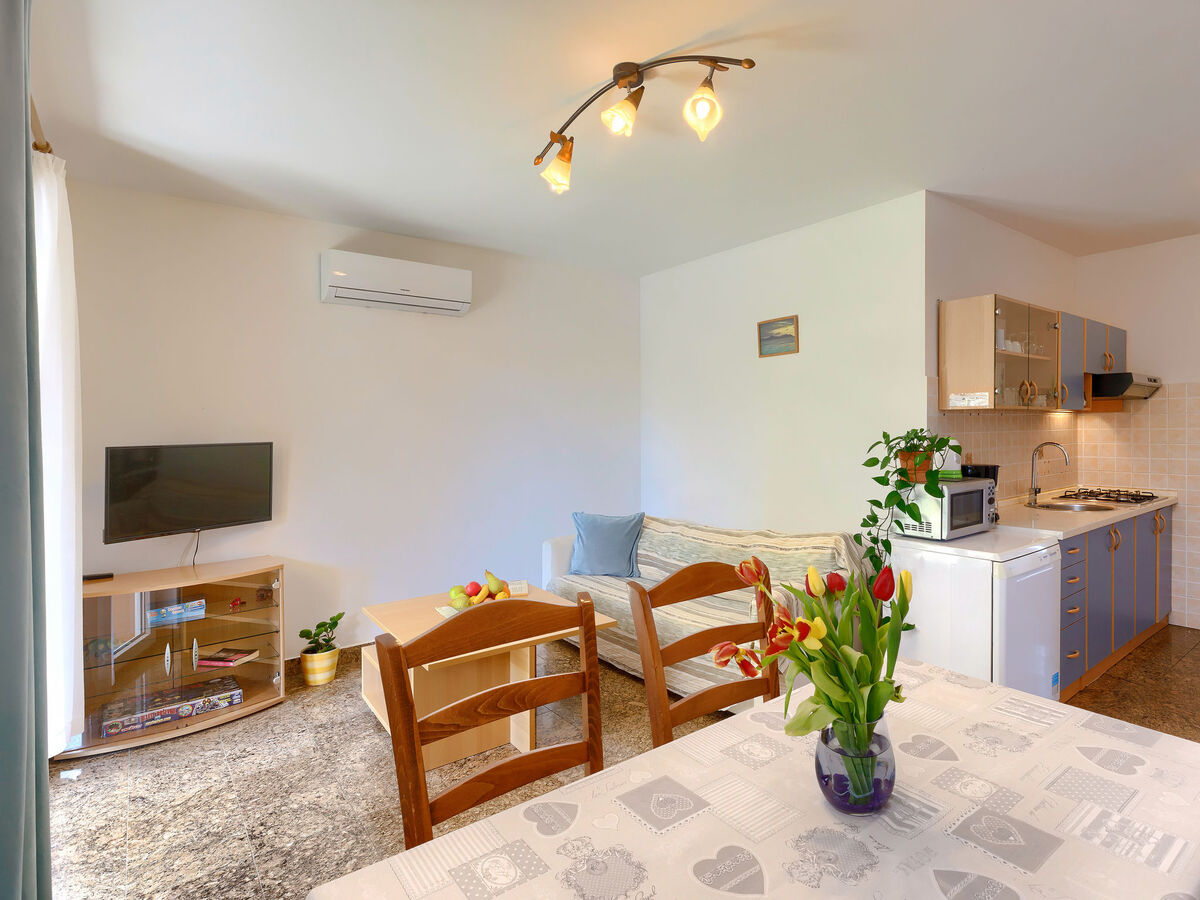 Partiellement rénovée en 2019, aménagement plaisant: séjour/salle à manger avec coin-cuisine, TV (satellite) et air-conditionné.