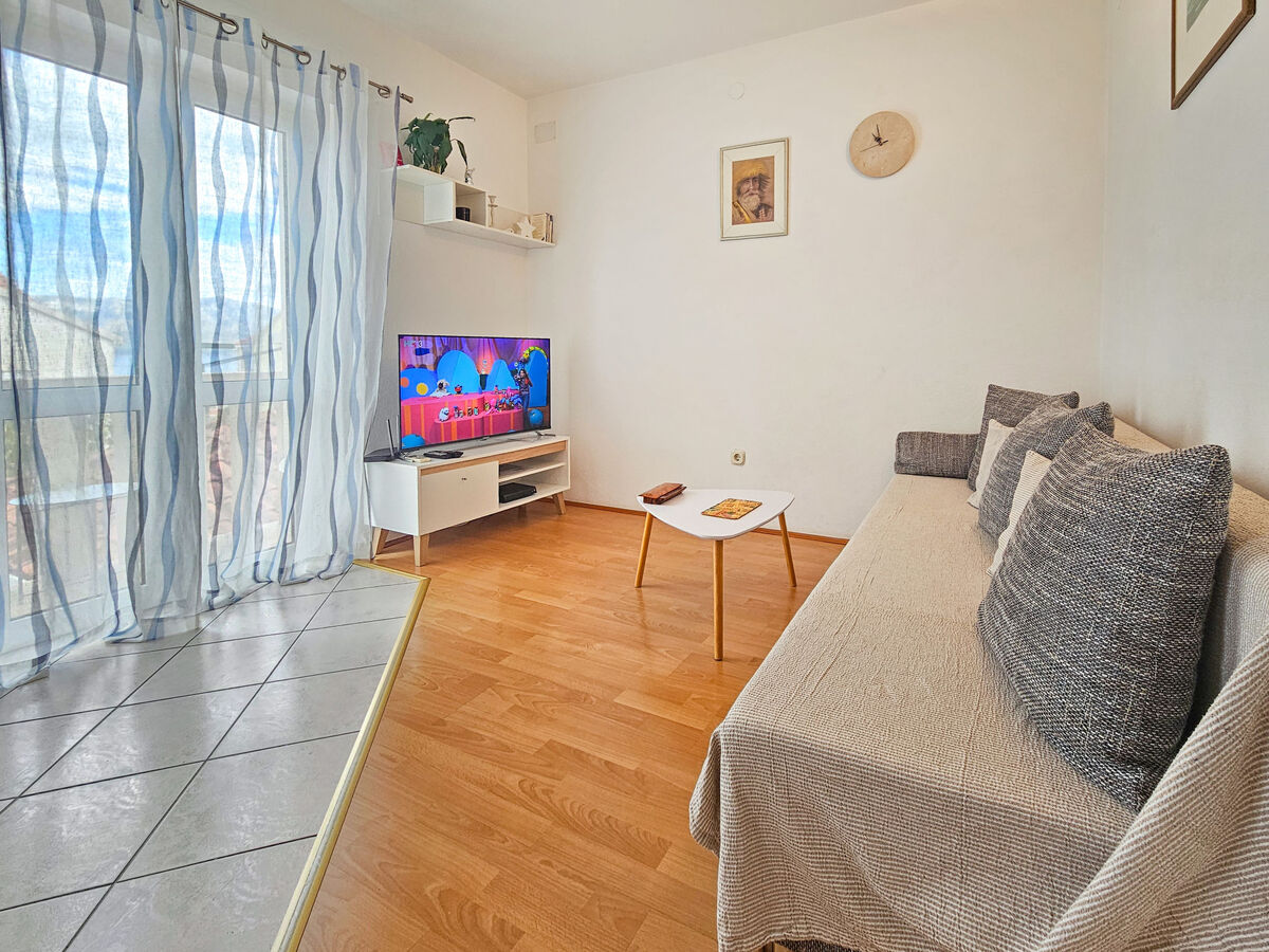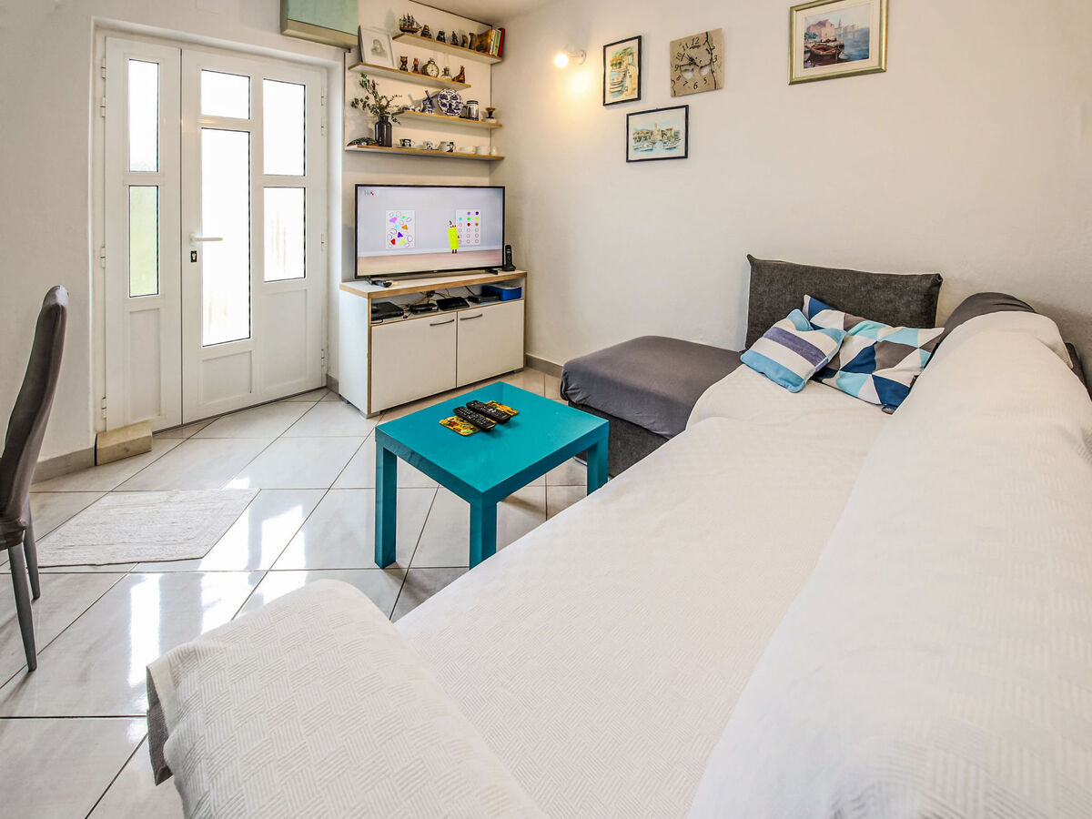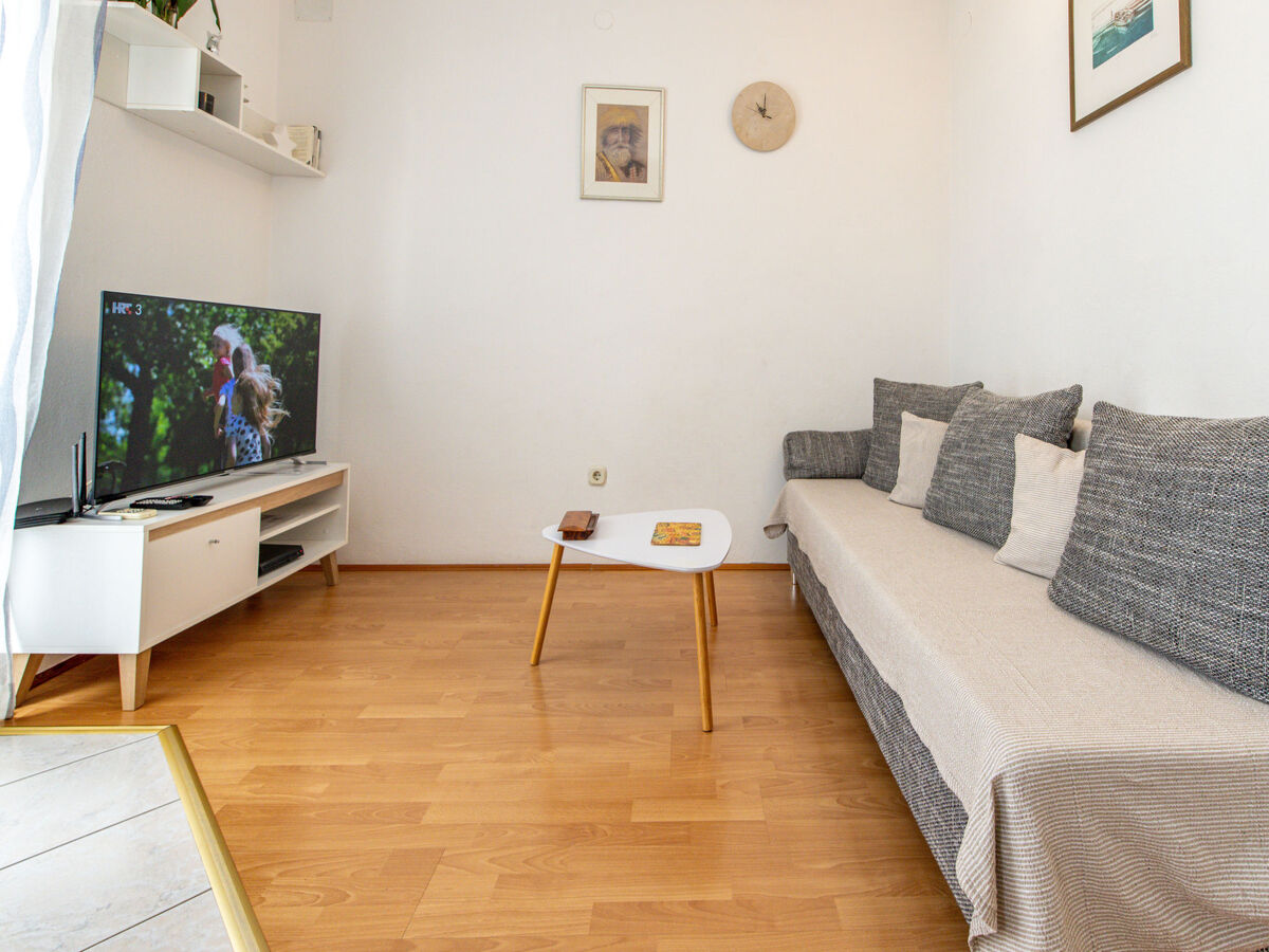 Séjour/salle à manger avec 1 divan-lit, TV (satellite) et air-conditionné.