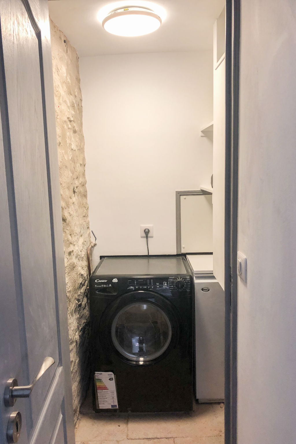 A disposition: lave-linge, sèche-linge, fer à repasser, chaise haute pour enfant, lit bébé, sèche-cheveux.