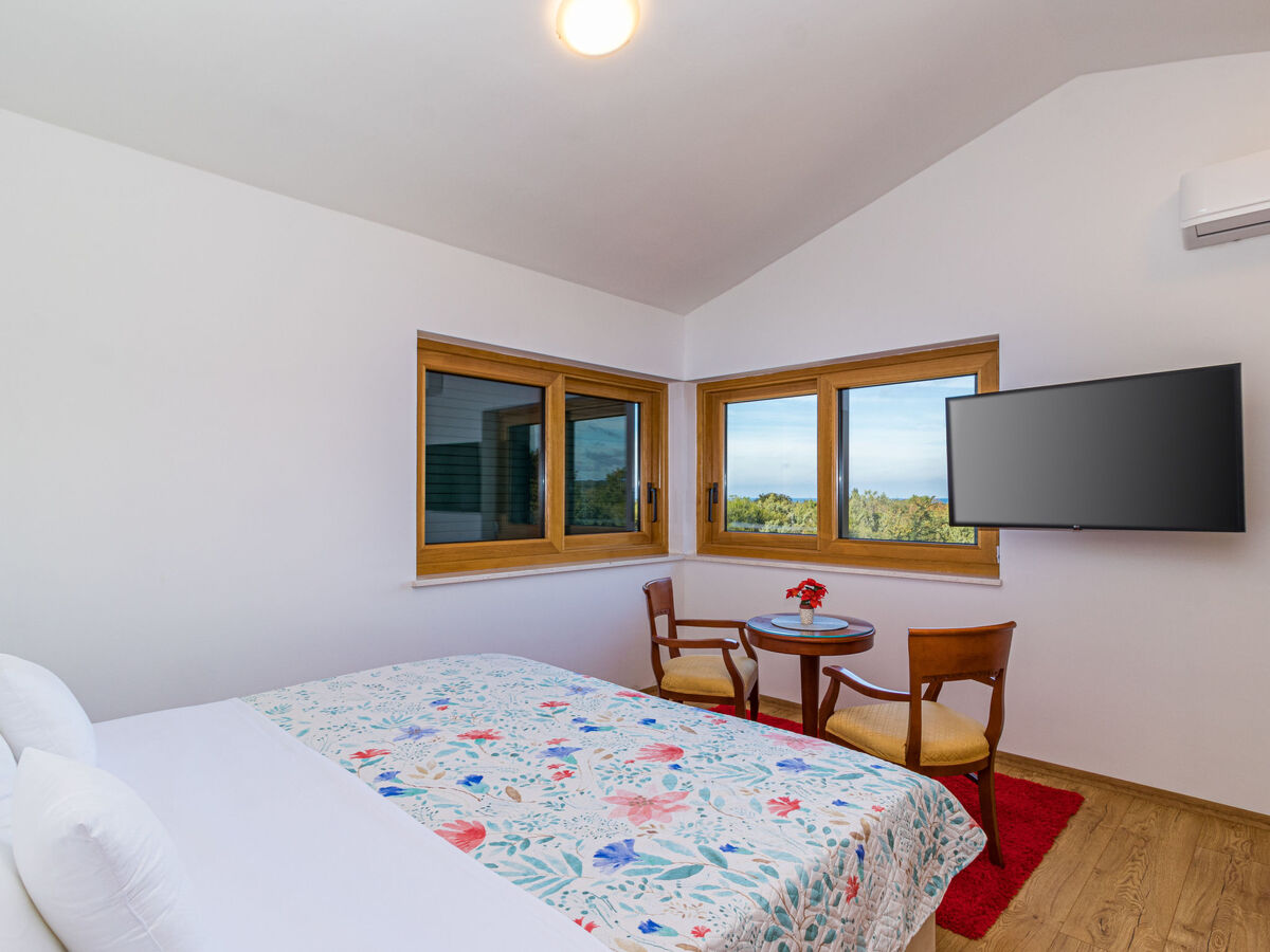 1 chambre 18 m2 avec 1 lit double (2 x 100 cm, longueur 200 cm), douche/WC et TV (satellite) (écran plat), air-conditionné.