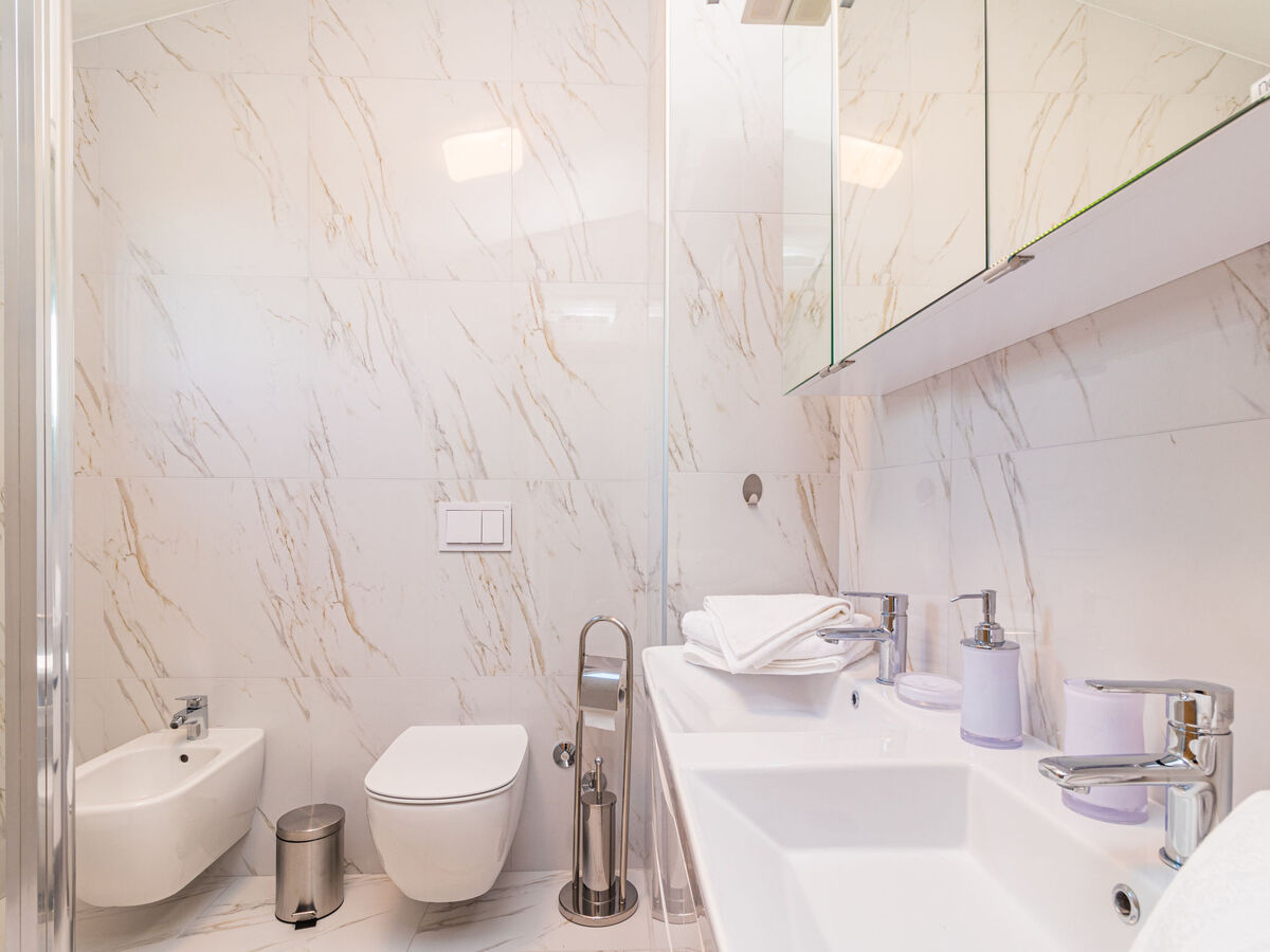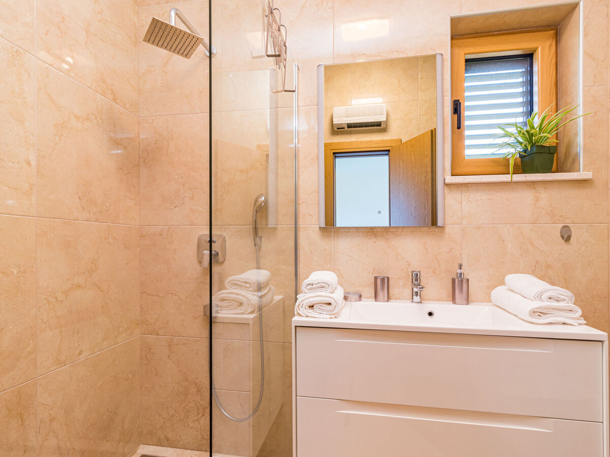 1 chambre 30 m2 avec 1 lit double (2 x 120 cm, longueur 200 cm), douche/bidet/WC, double vasque et TV (satellite) (écran plat), air-conditionné.