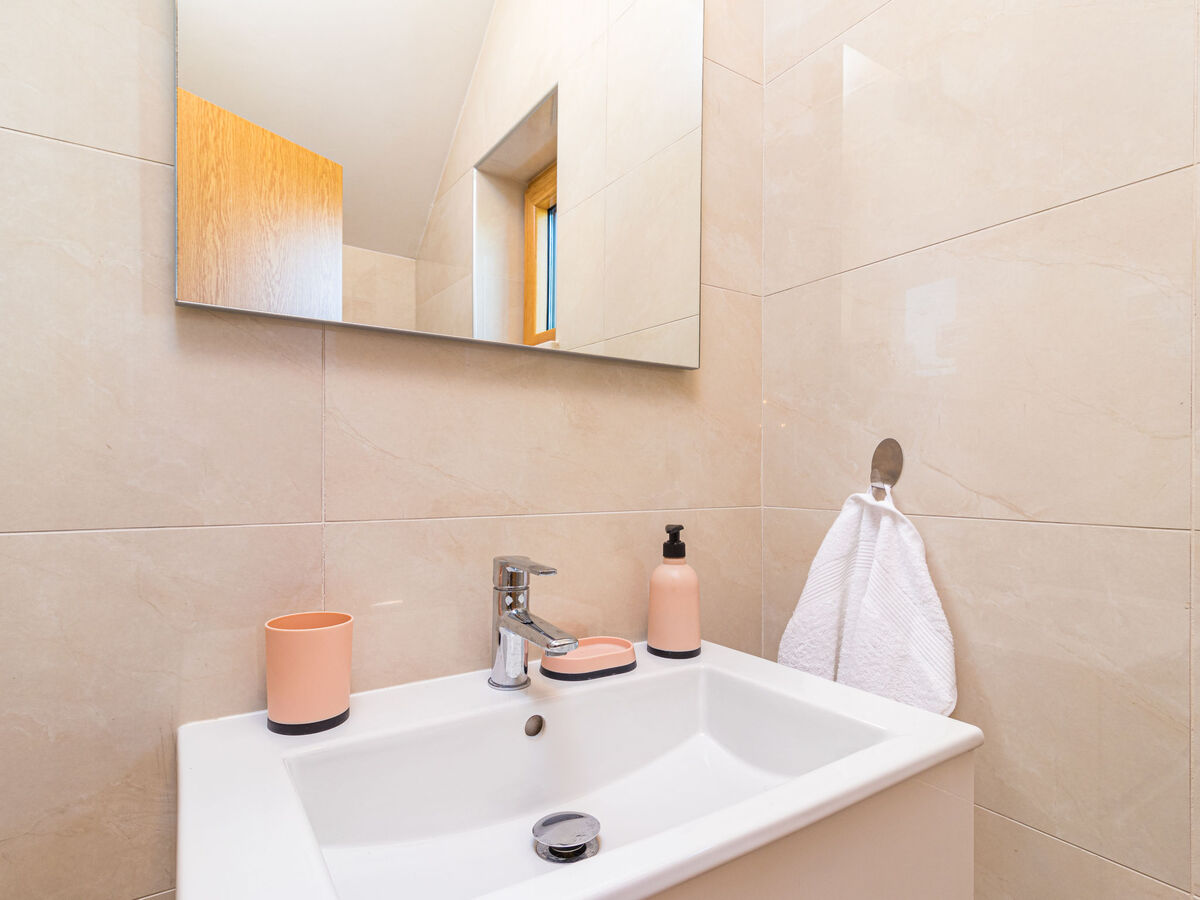 À l'étage supérieur: 1 chambre 18 m2 avec 1 lit double (2 x 100 cm, longueur 200 cm), douche/WC et TV (satellite) (écran plat), air-conditionné.