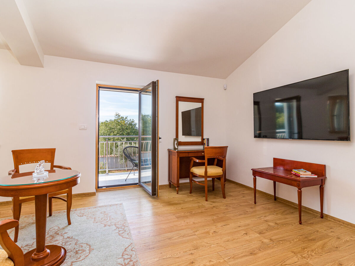 Séjour/chambre à coucher 35 m2 avec 1 divan-lit et TV (satellite) (écran plat), air-conditionné.