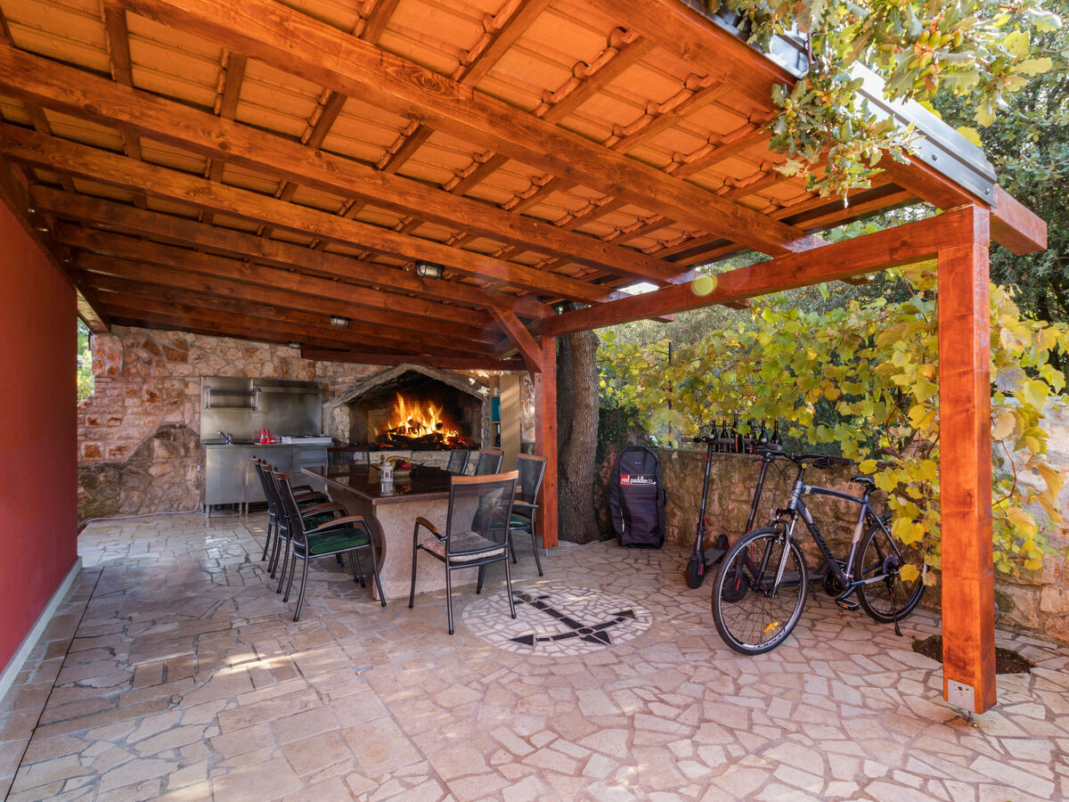 A usage privé:cuisine extérieure (4 plaques de cuisson, réfrigérateur).