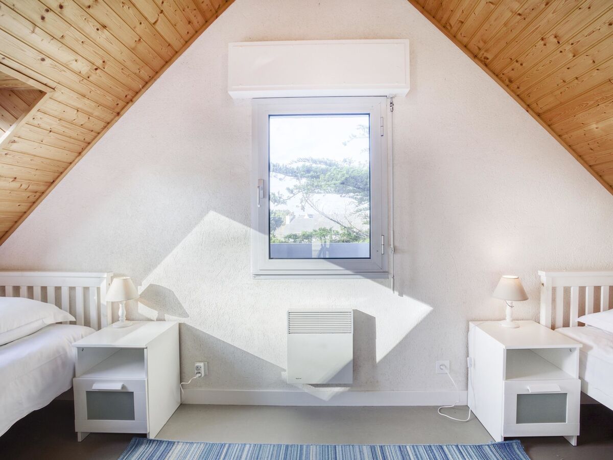À l'étage supérieur: 2 chambres, chaque chambre avec: 2 lits (90 cm, longueur 190 cm).