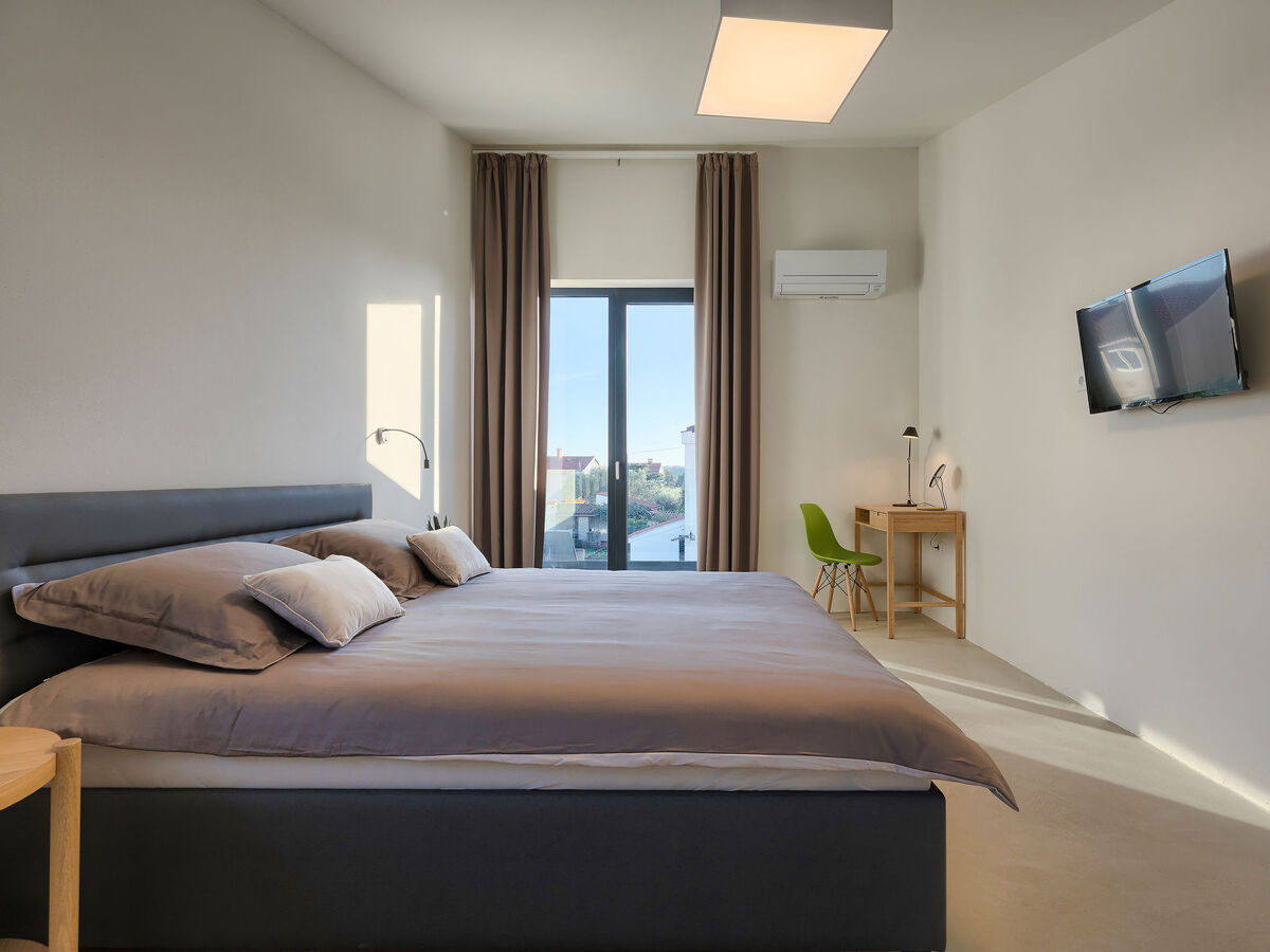 1 chambre avec 1 lit double (2 x 90 cm, longueur 200 cm), TV (satellite) (écran plat), air-conditionné.