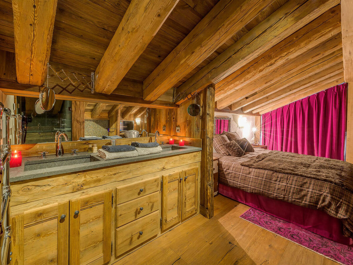 Aménagement de bon goût et avec beaucoup de bois: 3 chambres, chaque chambre avec: 1 lit double et douche/WC.