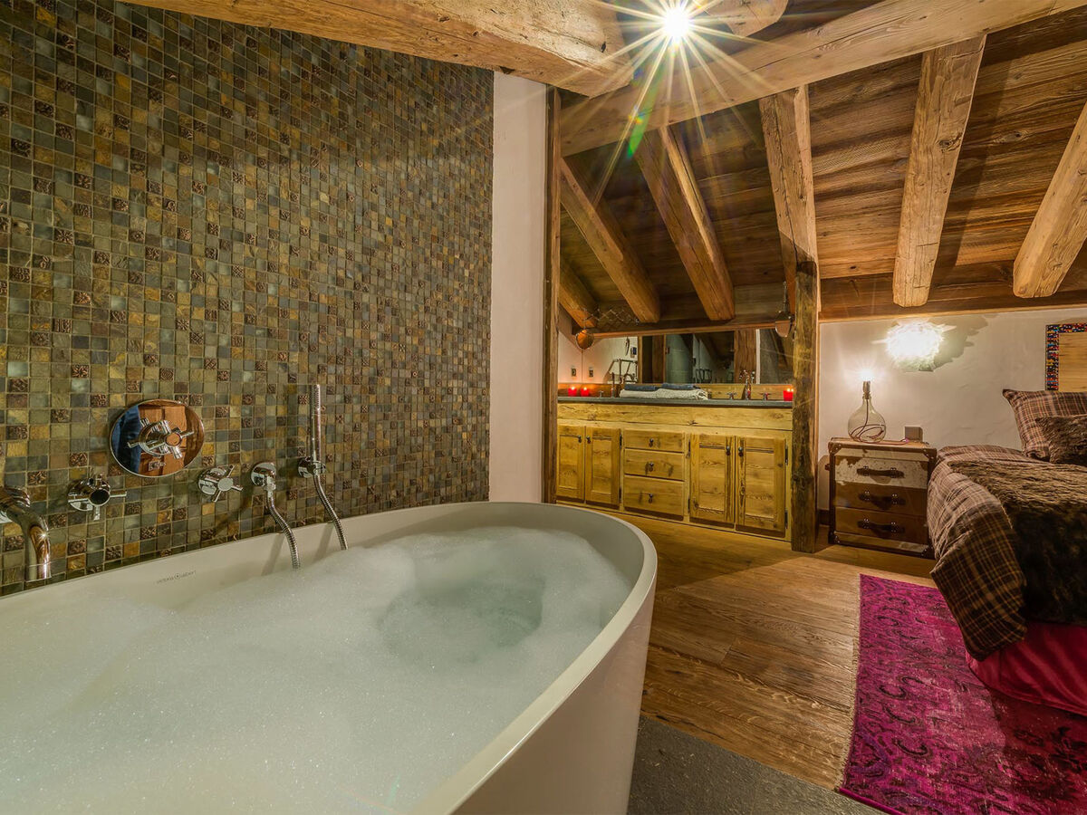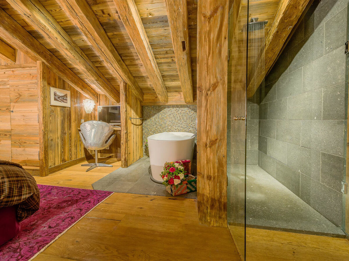 2ème étage: mansardé 1 chambre, mansardée avec 1 lit double et bain/douche/WC.