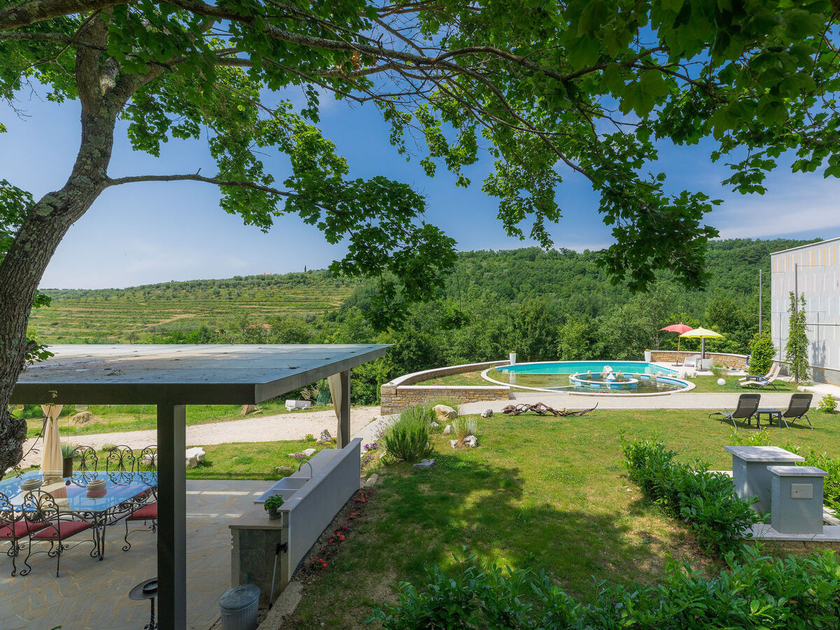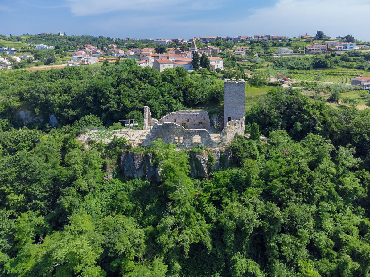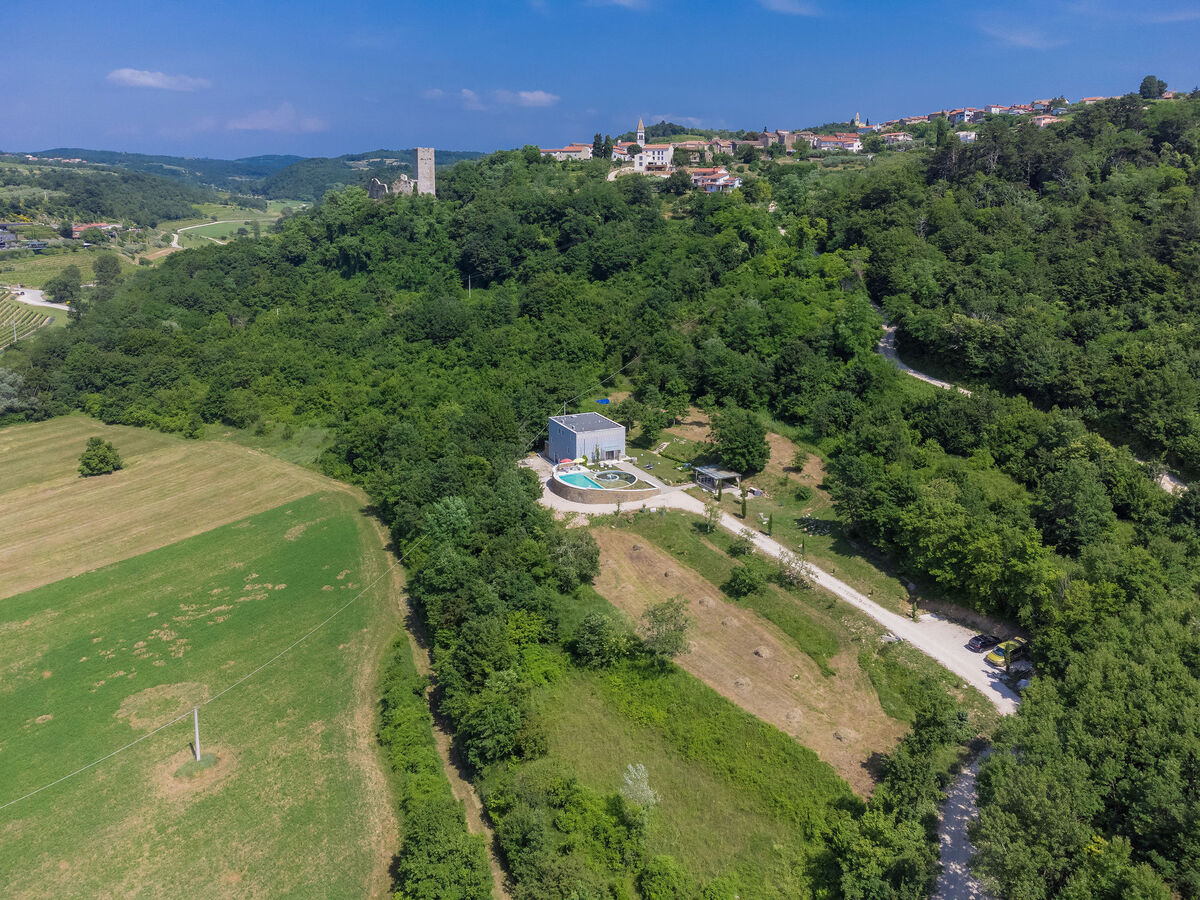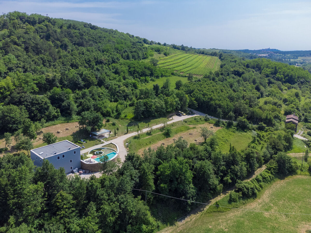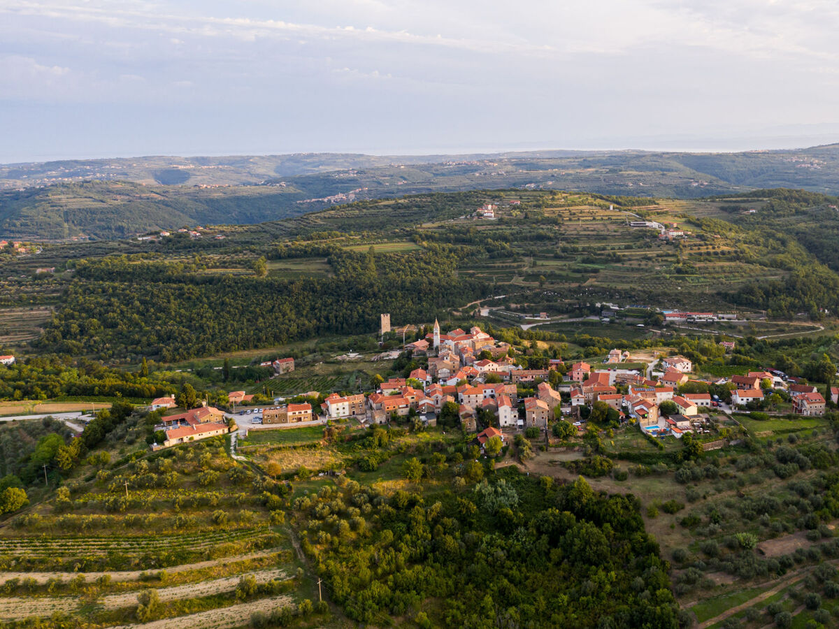 À 400 m du centre de Momjan, à 17 km du centre d'Umag, situation tranquille, ensoleillée sur un versant, à 17 km de la mer, dans la verdure.