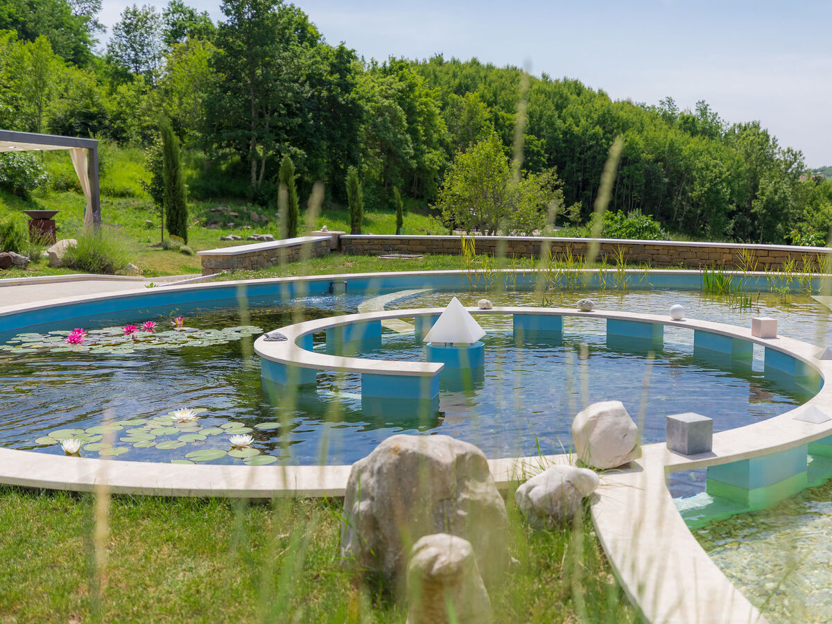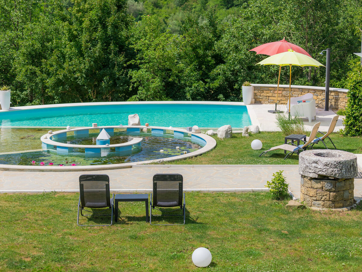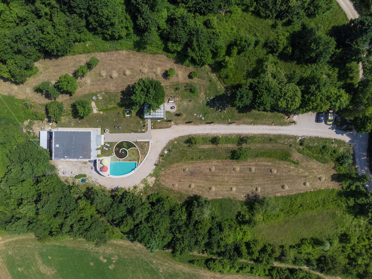 A usage privé: terrain 10'000 m2, jardin avec pelouse et arbres, piscine (40 m2, profondeur 135 cm, disponibilité saisonnière: 15.Mai.