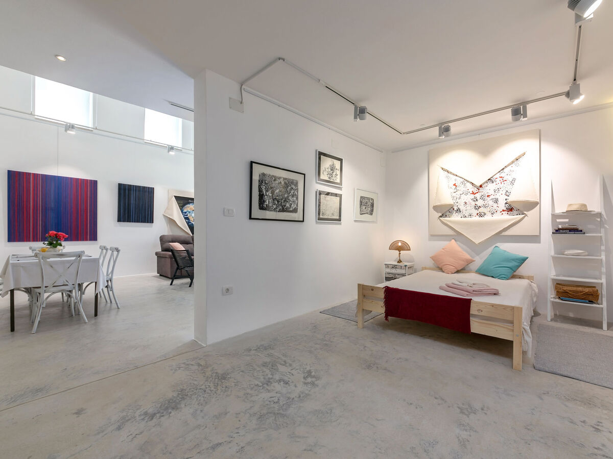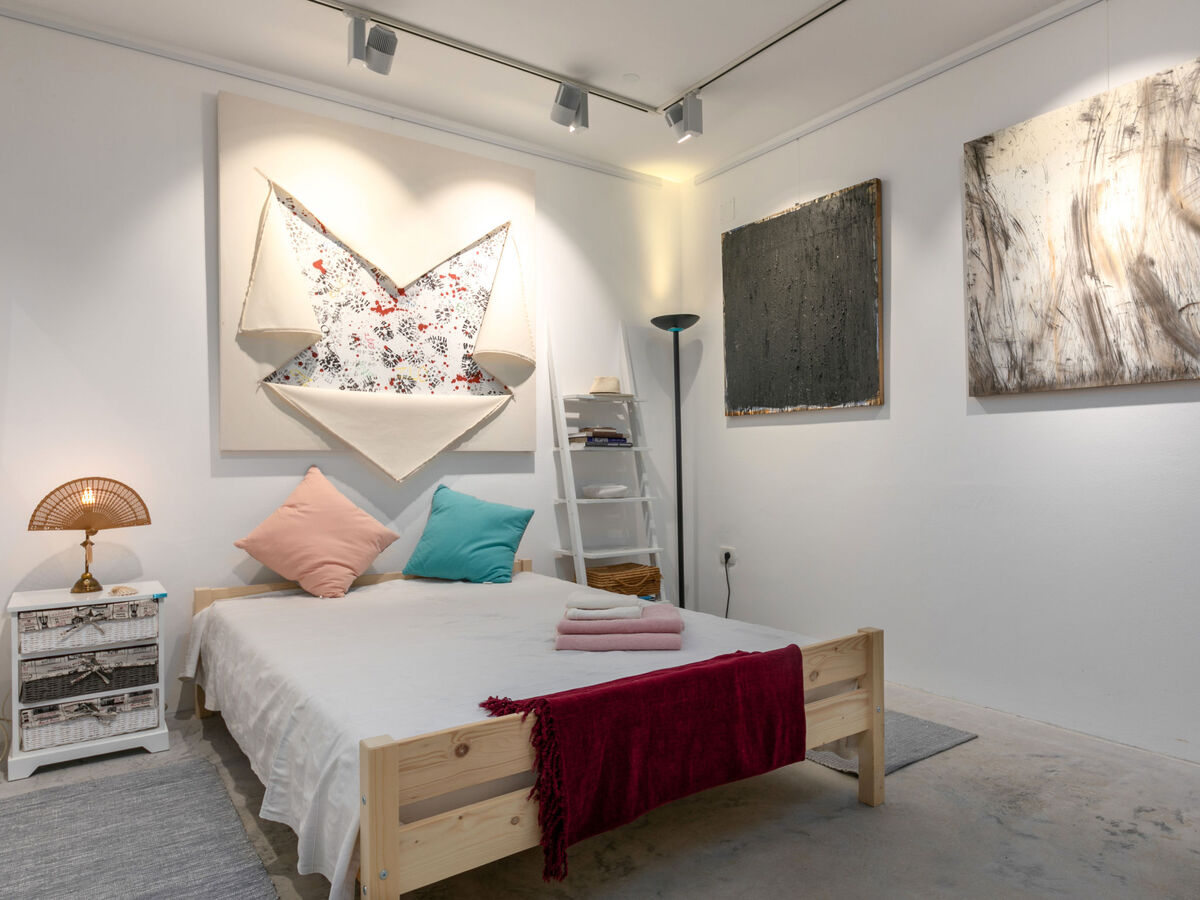 1 chambre ouverte avec 1 grand-lit (140 cm, longueur 200 cm).